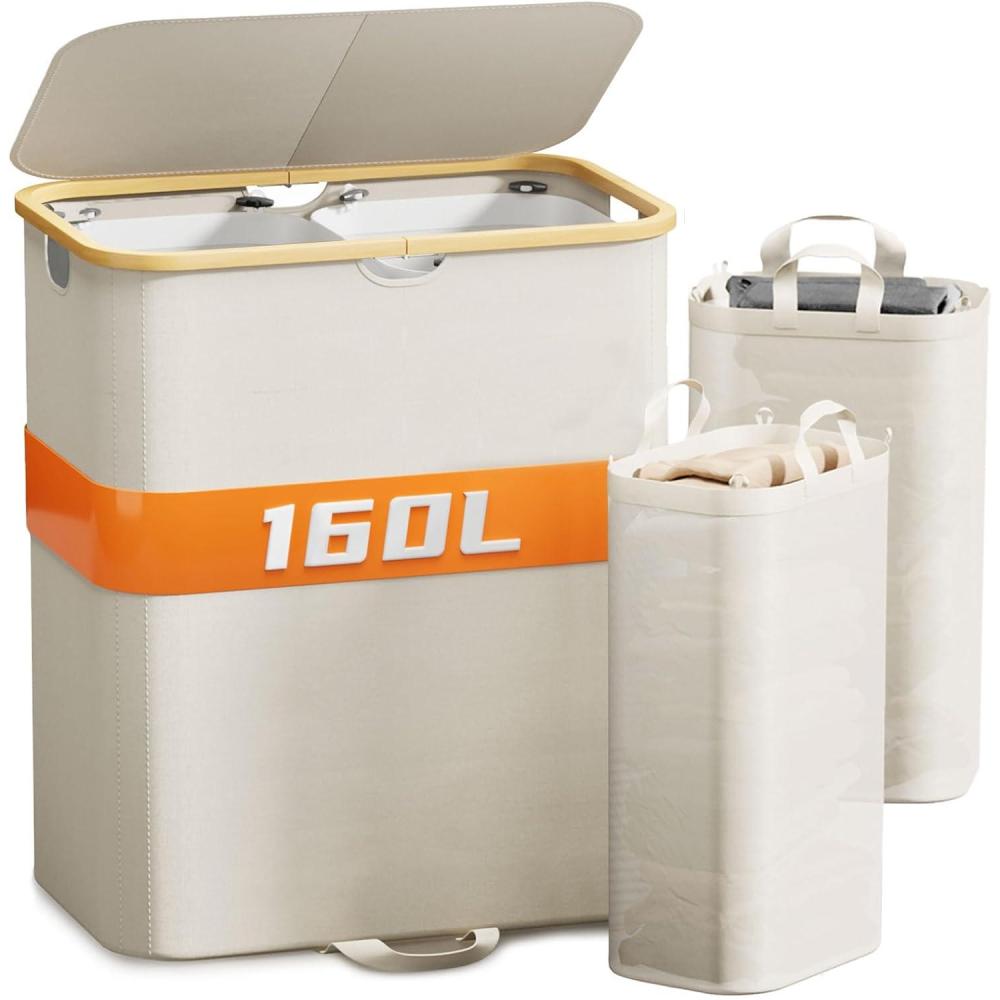 Upgraded Large-capacity Laundry Basket:Upgraded laundry hamper is 160L (42 gallons). Spacious interior is enough to hold a family's dirty clothes for a week, so you no longer have to worry about frequent washing