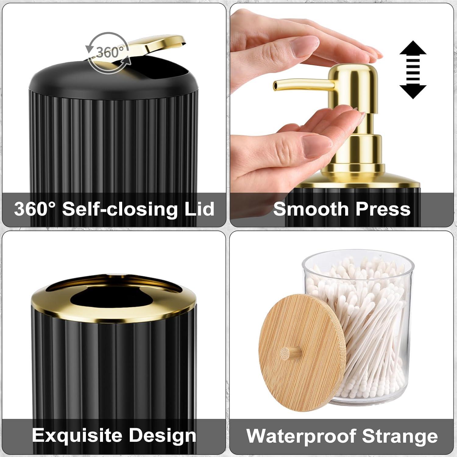STURDY MATERIAL – The bathroom Accessory Set is made of STURDY ABS+PP material that can outlast competing products. It’s also ideal for kids' baths because of its durability and not easy to break like the ceramic set. Our high-quality plastic bath accessories even if constantly used, keep their look just as elegant and new over time.