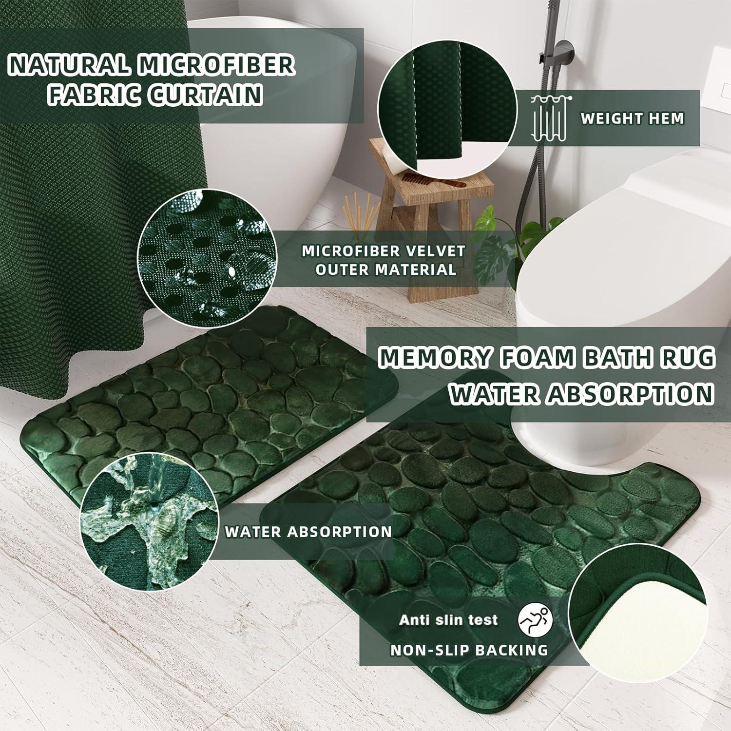 28PC Bathroom Set – Gorgeous Pink Bathroom Set, Bathroom Accessory Set, Pink Shower Curtain Set with 5PC Shower Caddies(Dark Green)