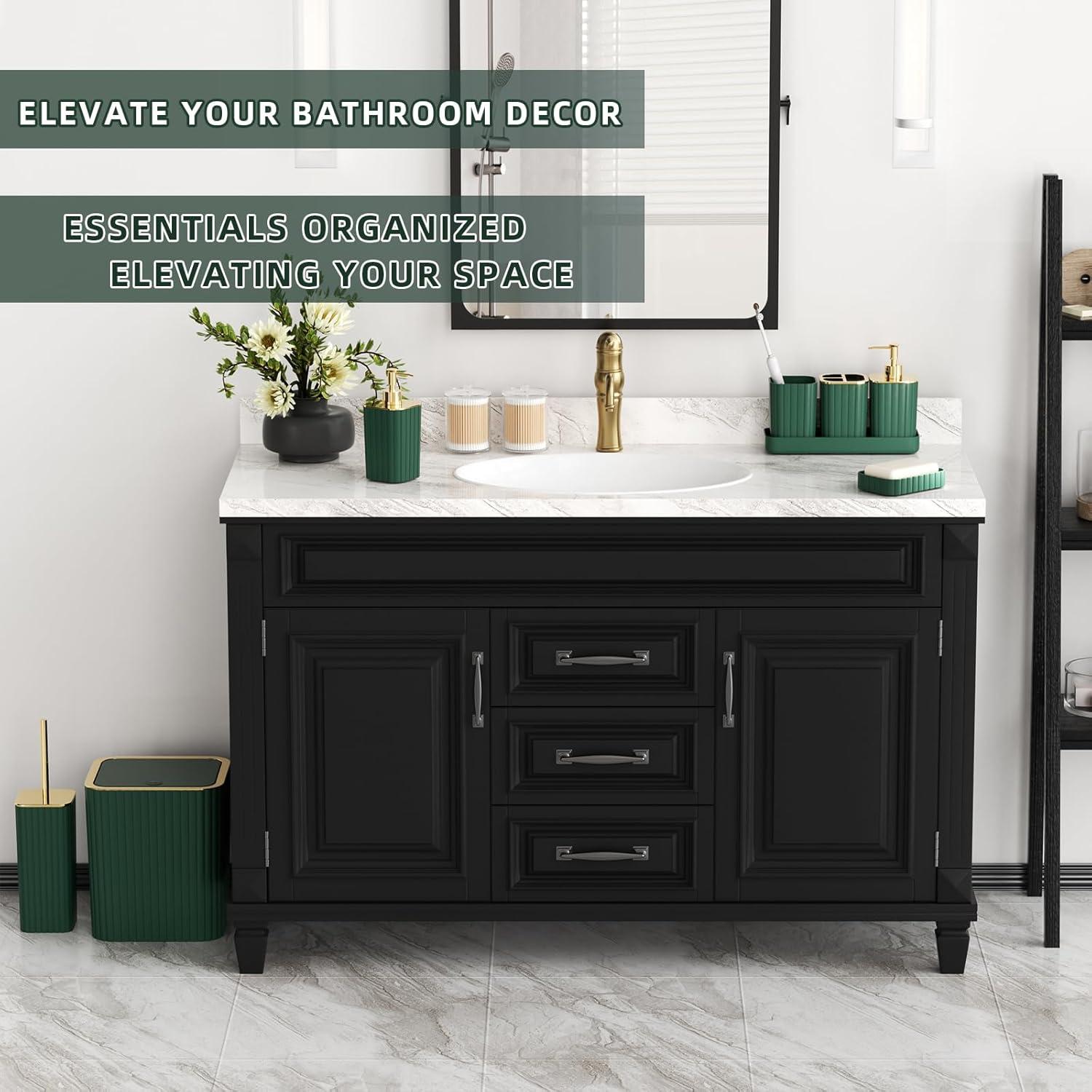 28PC Bathroom Set - Gorgeous Pink Bathroom Set, Bathroom Accessory Set, Pink Shower Curtain Set with 5PC Shower Caddies(Dark Green&Gold)