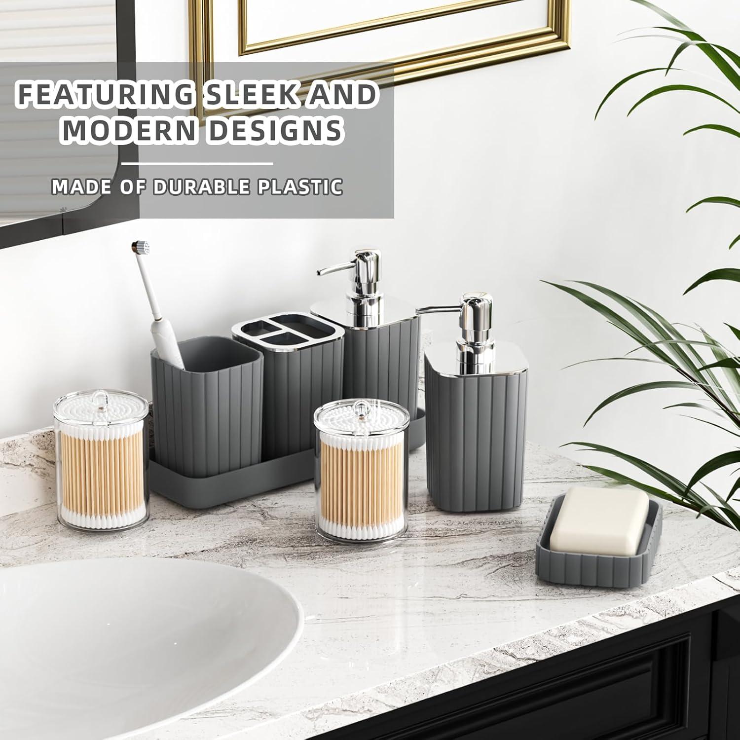 SPECIAL DESIGN: The bathroom accessory set adopts a unique striped design, which adds a touch of beauty and high-end to the whole. The diversity of combinations provides great convenience, including everything in the home. We can also use this plastic bathroom accessories during travel, which will help you solve a lot of troubles.