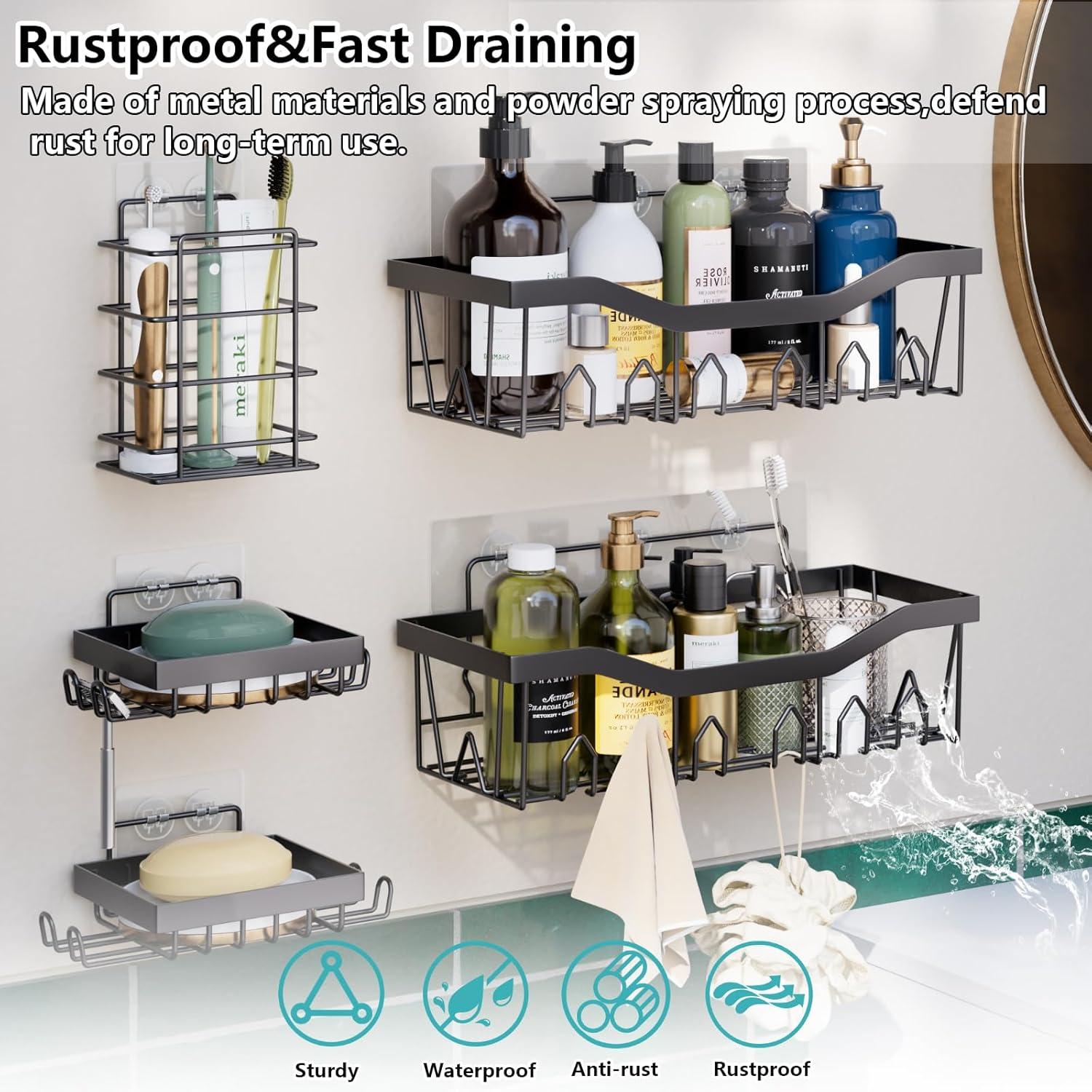BATHROOM ACCESSORIES SET: This 28-Piece Bathroom accessory set is made of durable plastic that can outlast other products. Item includes 5 x shower caddies, 2 x soap dispenser, 1 x toothbrush holder, 1 x bathroom tumbler, 1 x vanity tray, 1 x soap dish, 1 x toilet brush, 1 x trash can, 2 x plastic jars, 1 x shower curtain, 12 x hooks. Our high quality plastic bath accessories will resist to constant use.