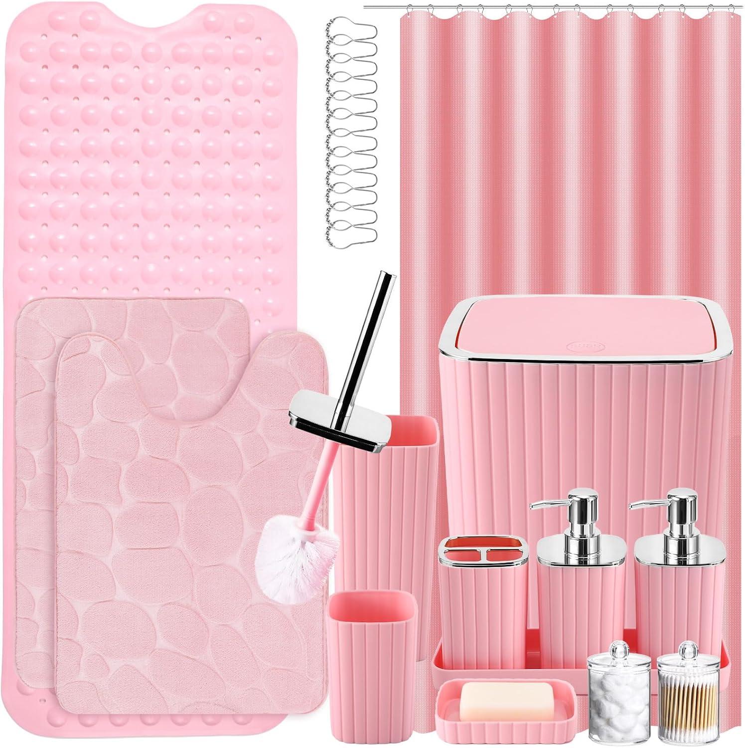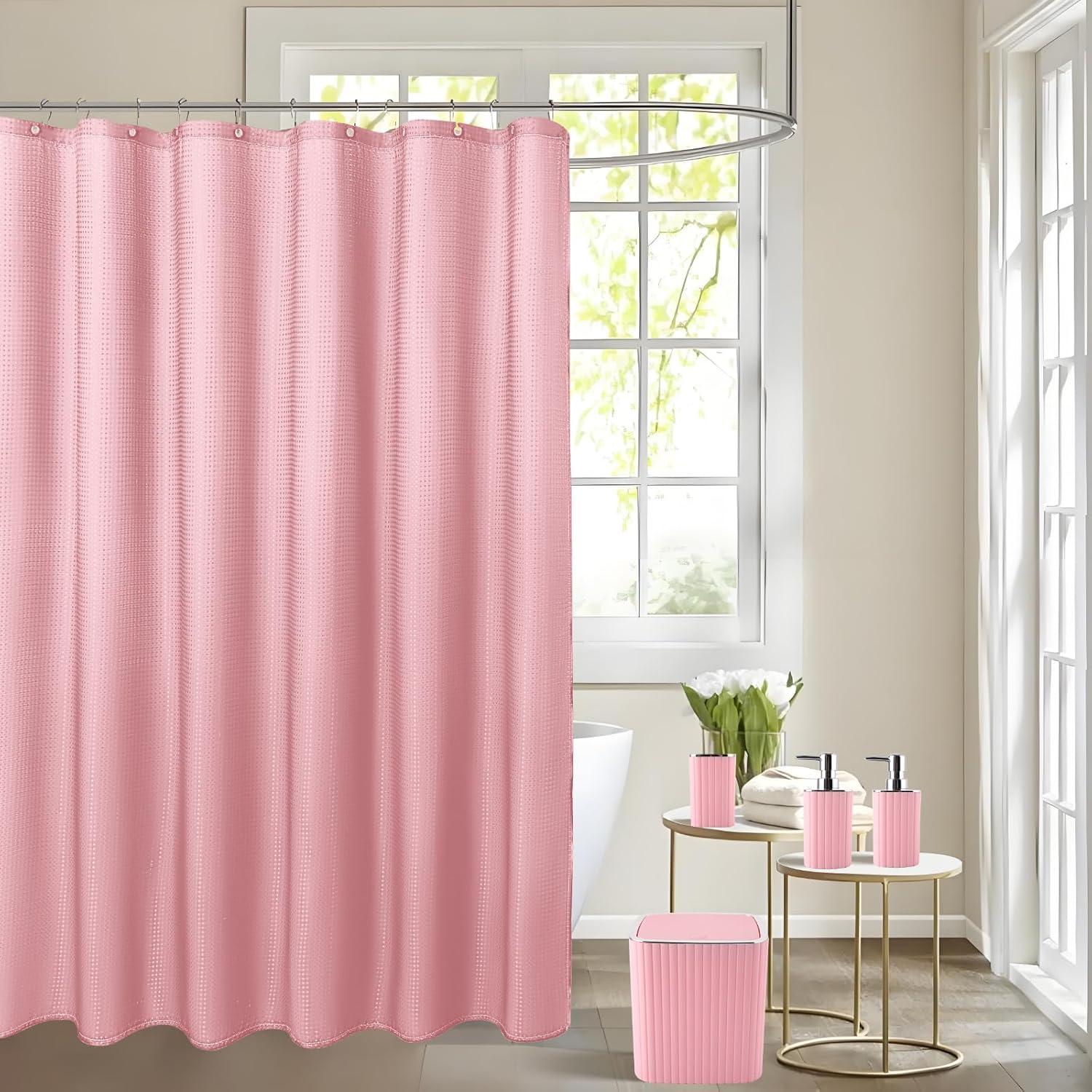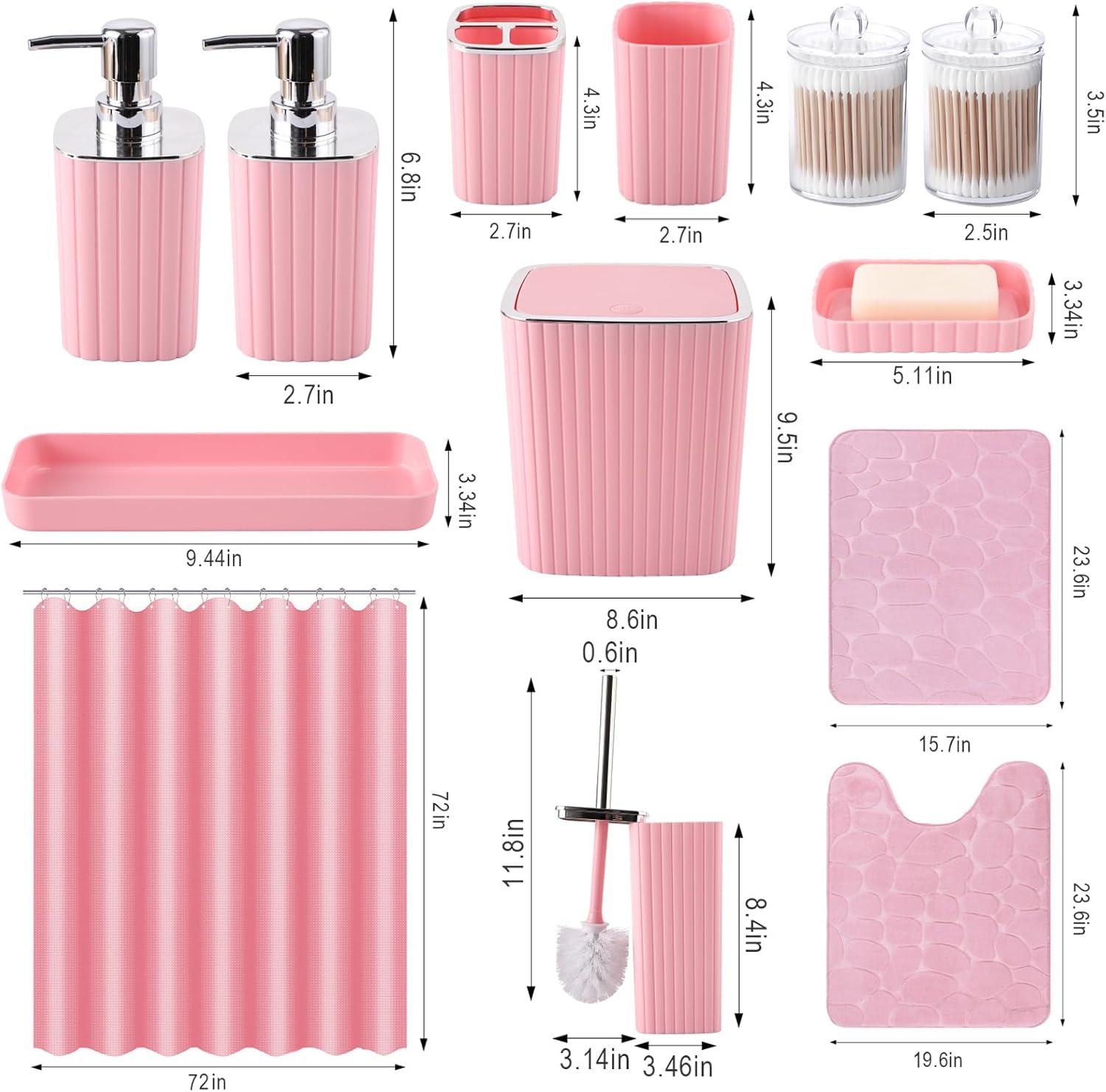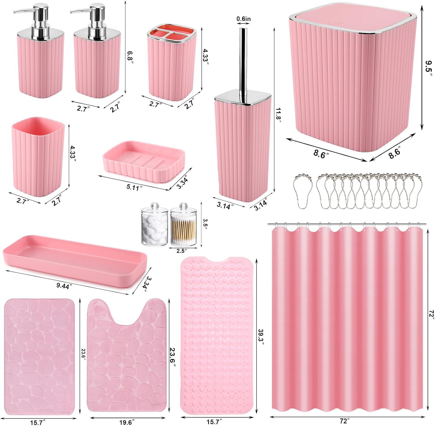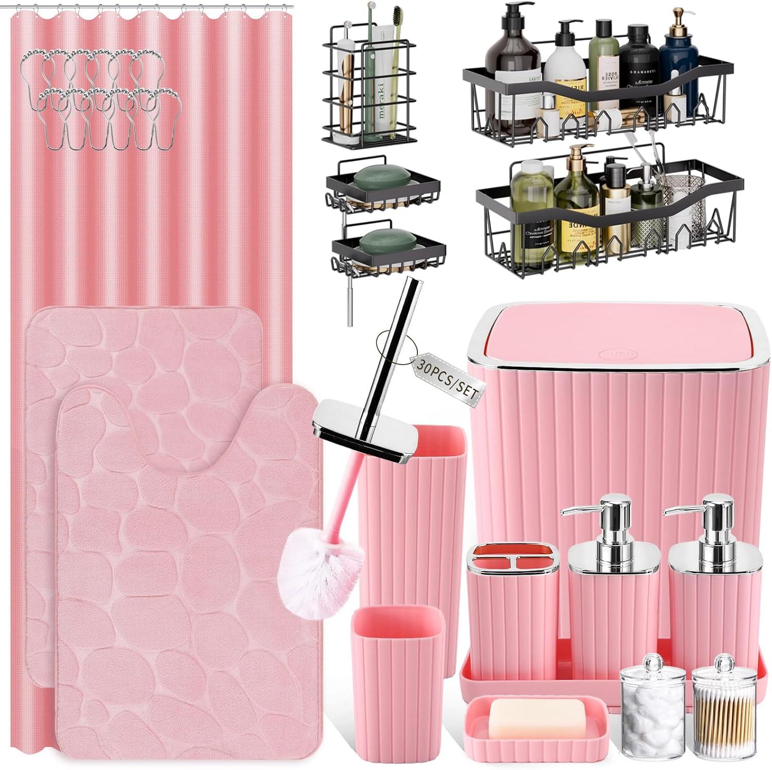 28PC Bathroom Set - Gorgeous Pink Bathroom Set, Bathroom Accessory Set, Pink Shower Curtain Set with 5PC Shower Caddies(Pink&Silver)