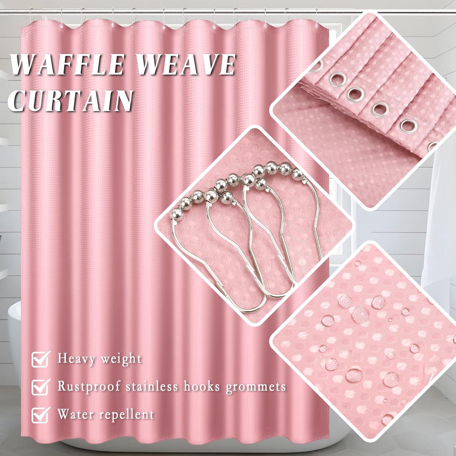 28PC Bathroom Set – Gorgeous Pink Bathroom Set, Bathroom Accessory Set, Pink Shower Curtain Set with 5PC Shower Caddies(White)