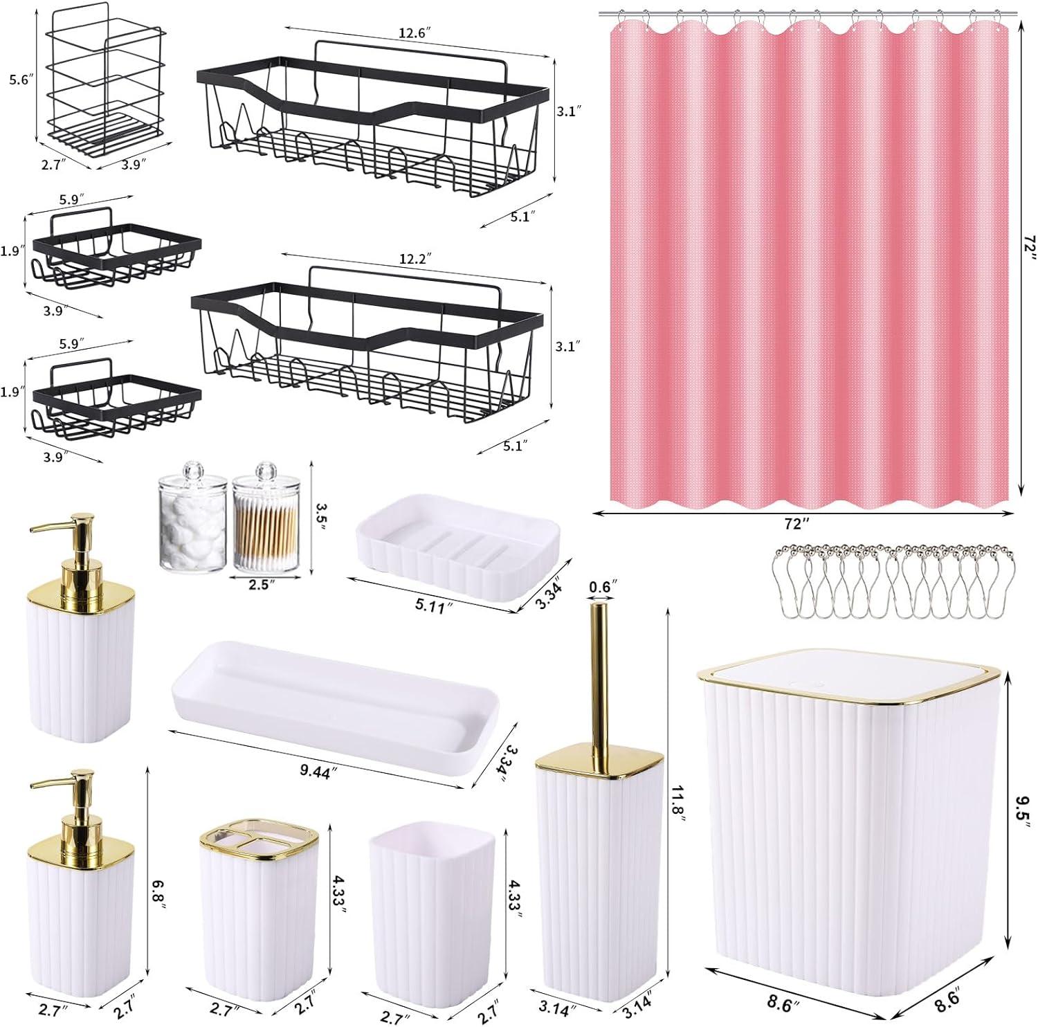28PC Bathroom Set - Gorgeous Pink Bathroom Set, Bathroom Accessory Set, Pink Shower Curtain Set with 5PC Shower Caddies(White&Gold)