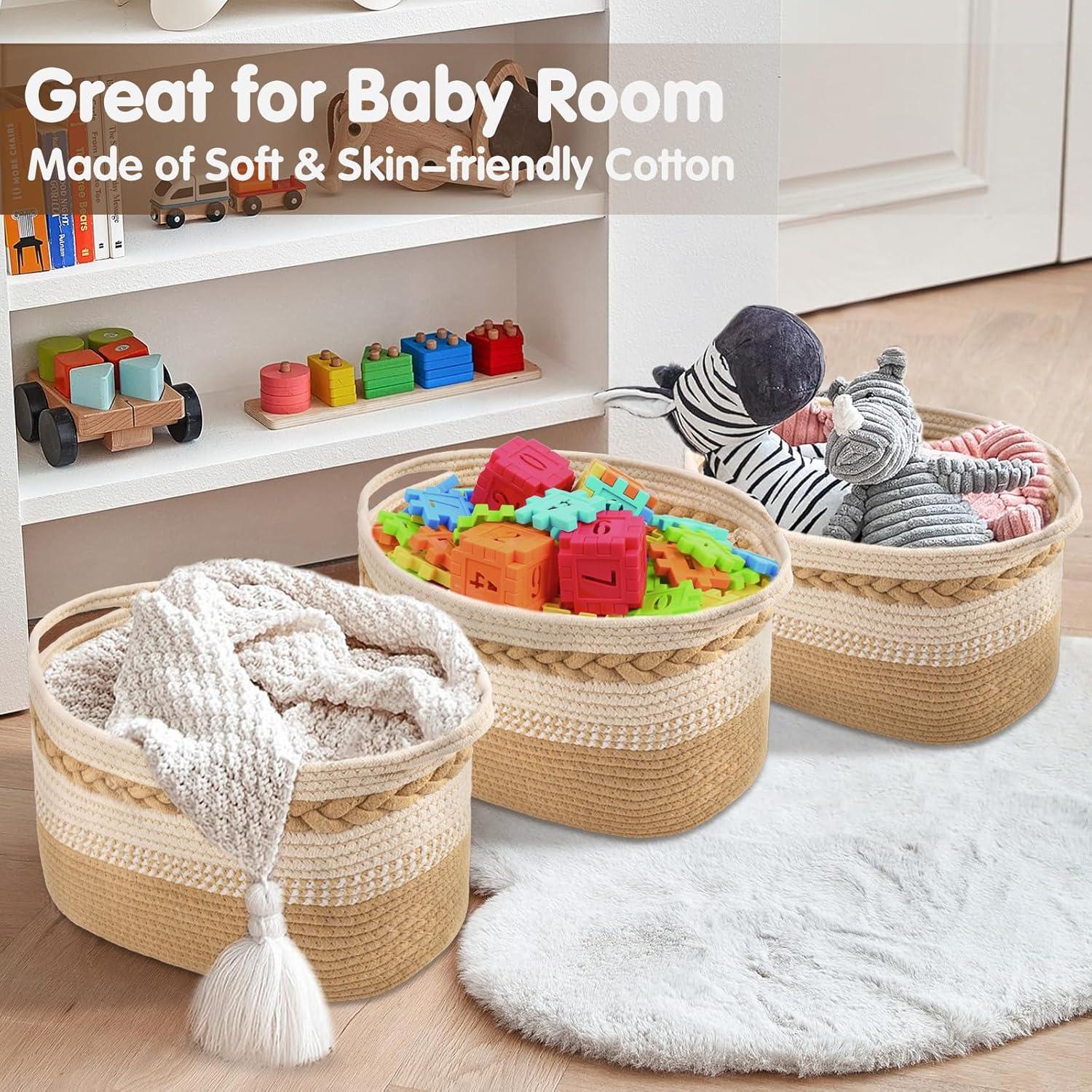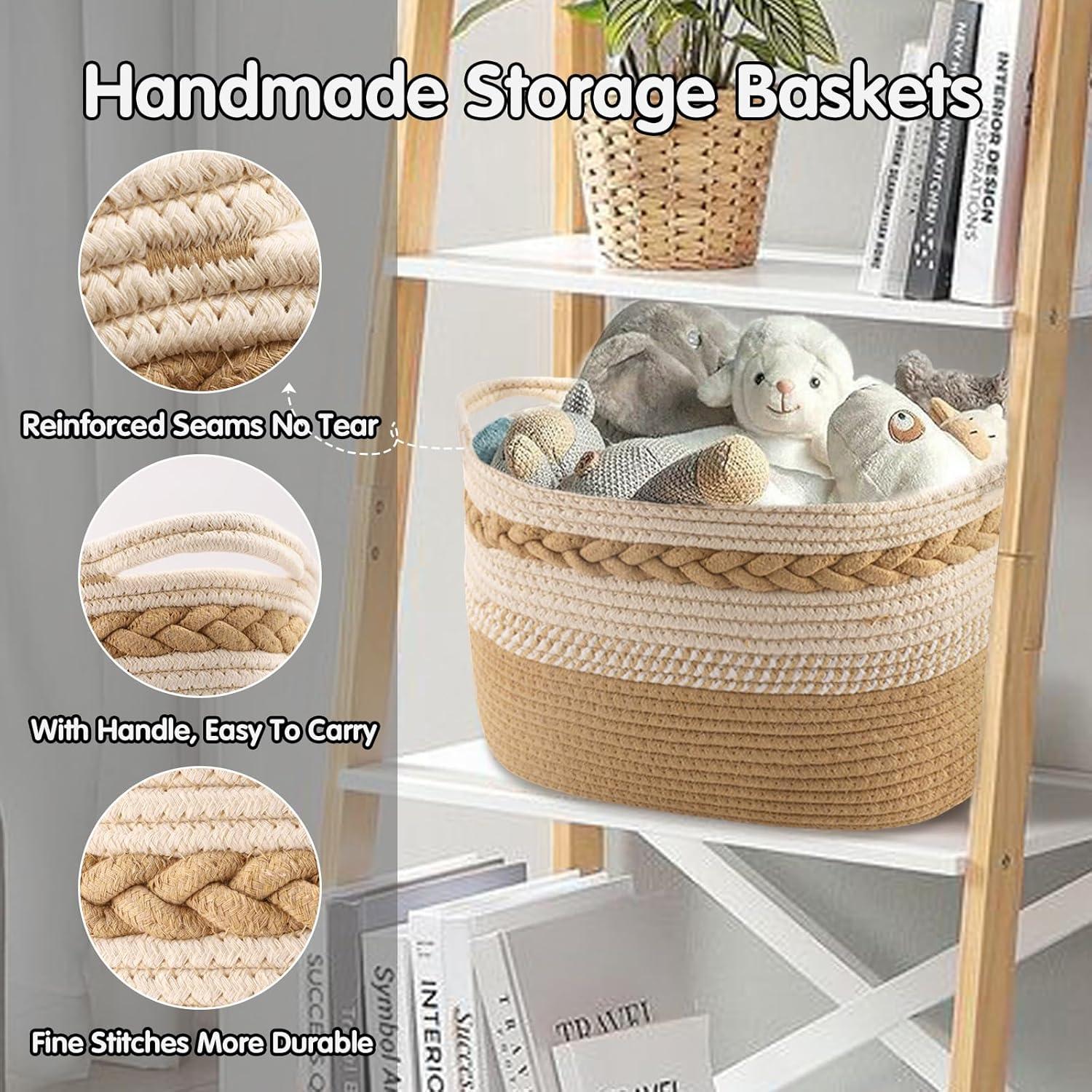 【Built-in Handle Design】These cotton rope baskets for storage have built-in handles on the side of each basket for easy carrying and storage. The handle is made of three-strand braided rope, which is comfortable to the touch, tight and durable, perfect for storing toys or carrying items around the house