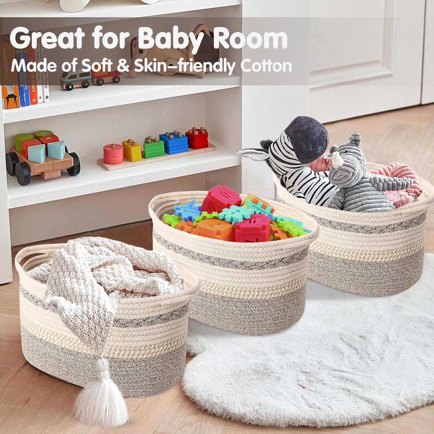 【Built-in Handle Design】These cotton rope baskets for storage have built-in handles on the side of each basket for easy carrying and storage. The handle is made of three-strand braided rope, which is comfortable to the touch, tight and durable, perfect for storing toys or carrying items around the house