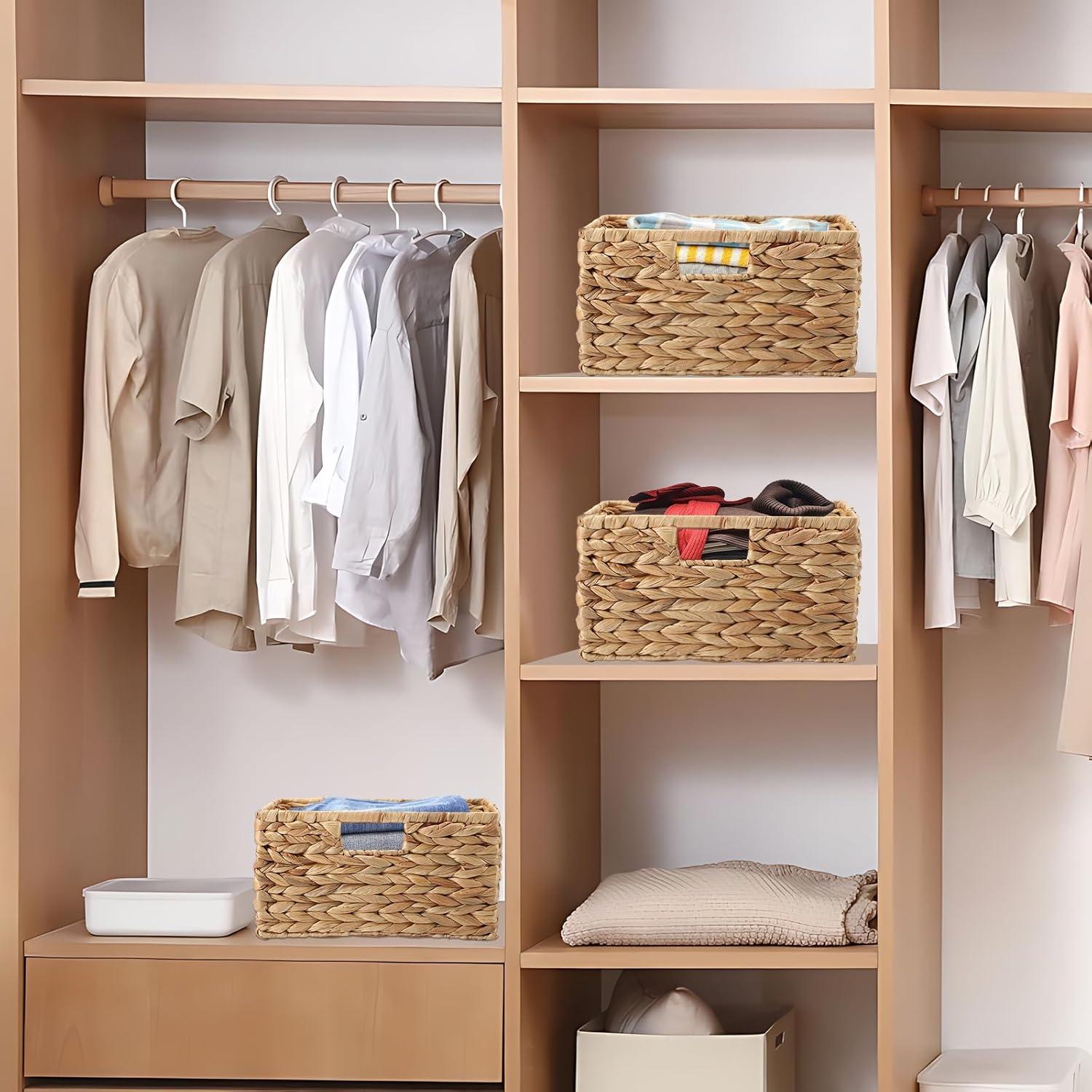 【Vintage Designed to Complement Home】Baskets for organizing is stylish and beautiful, and can be used as a wardrobe basket and a shelf basket. The woven storage basket is suitable for classrooms, baby rooms, children's room, living rooms, bedrooms, laundry rooms, dormitories, etc. It can be perfectly matched with your home wardrobe or style