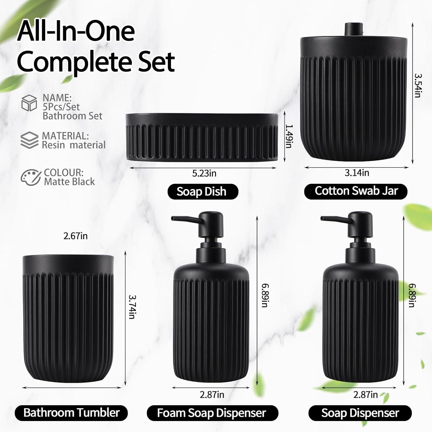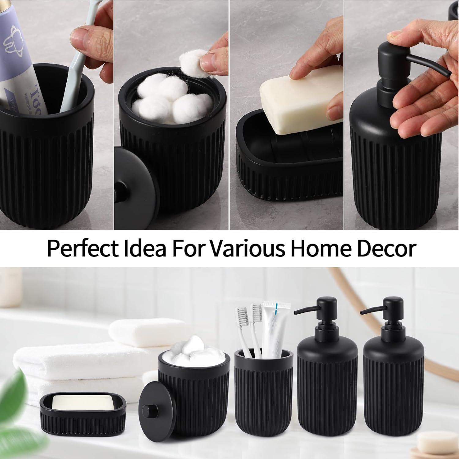 【 Durable & Premium Resin Construction】: Crafted from high-quality resin, this bathroom set is built to last. Resin is stronger and more durable than ceramic or plastic, and unlike glass, it won't easily break. The waterproof design ensures long-lasting performance in humid environments. Plus, its smooth surface is easy to clean—simply wipe with a soft cloth to maintain its shine