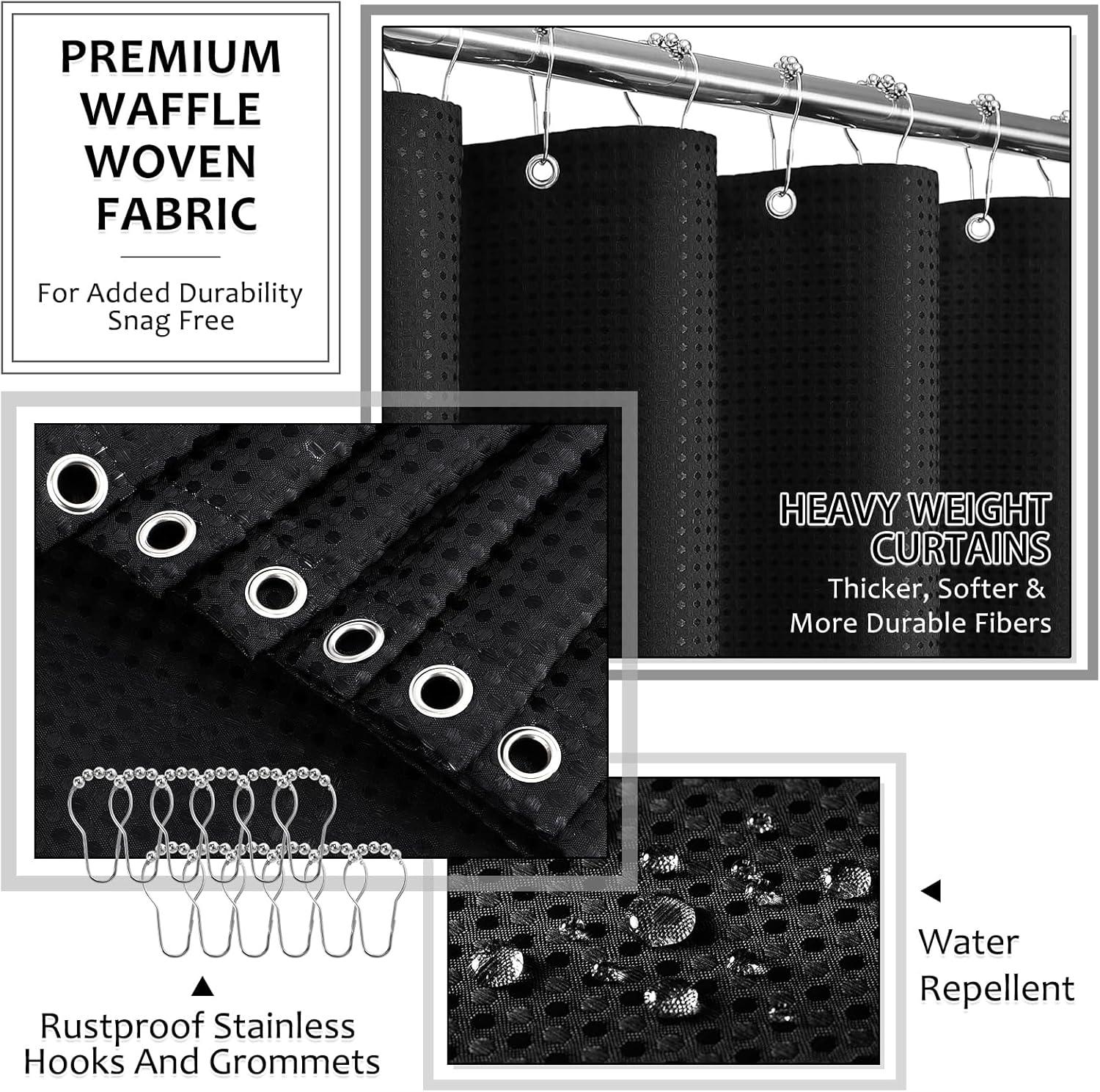 【8 Piece Bathroom Sets with Shower Curtain and Rugs】:Upgrade your space instantly with XLHOMO's complete 8-piece suite. This set includes: 1 x 12oz soap dispenser (fits any refill!), 1 x toothbrush holder, 1 x bathroom tumbler, 1 x cotton swab apothecary jar, 1 x multifunctional tray, 1 x wrinkle-resistant shower curtain, 2 non-slip bath mats* (19.6″x31.5″ tub mat + 15.7″x23.6″ sink rug). With this all-in-one set, you can effortlessly organize your toiletries and bath essentials, keeping your bathroom neat, tidy