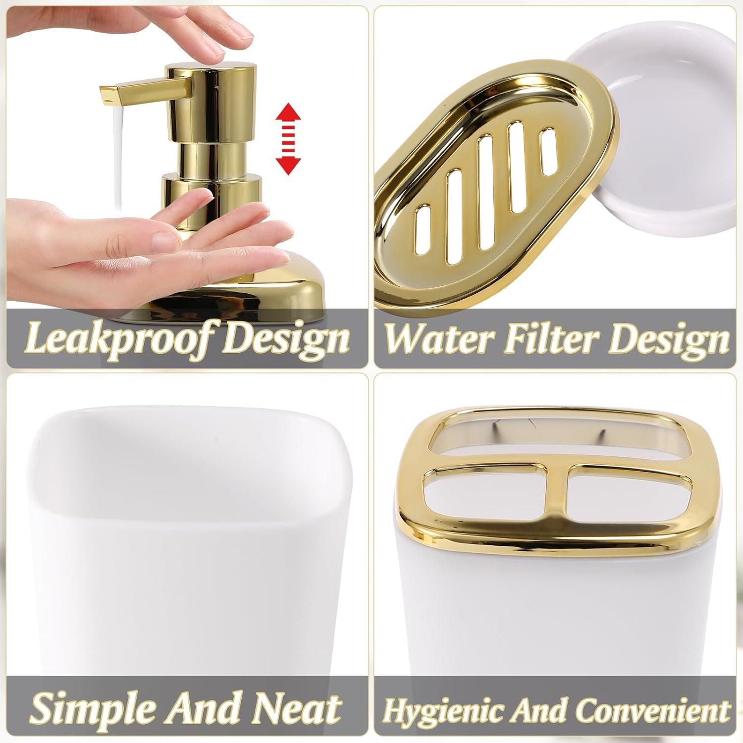 ใ€๐Œ๐จ๐๐ž๐ซ๐ง ๐‹๐ฎ๐ฑ๐ฎ๐ซ๐ฒ ๐Ÿ๐ŸŽ๐๐‚๐’ ๐๐š๐ญ๐ก๐ซ๐จ๐จ๐ฆ ๐’๐ž๐ญใ€‘Upgrade your bathroom with our stylish bathroom accessories, complete bathroom set includes a white and gold press top lid trash can with wheels, lotion dispensers, toothbrush holder, toothbrush cup, toilet brush, soap holder, qtip holder dispensers. Perfect for creating a convenient bathroom life