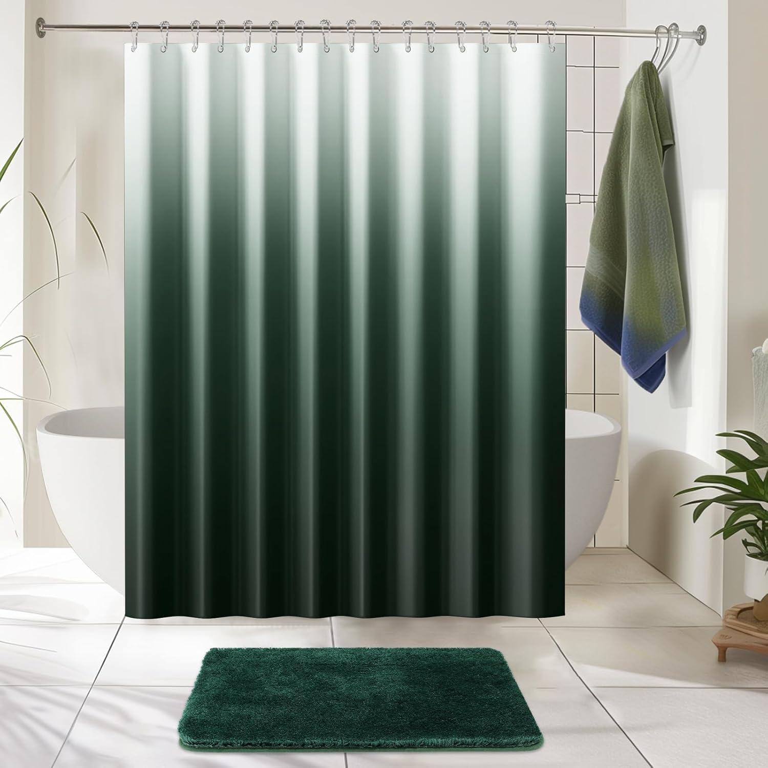 Bathroom Accessories Set – Beige Bathroom Sets with Shower Curtain and Rugs, 14PC Shower Curtain Set with Stainless Steel Hooks, Beige Bathroom Sets Complete for Home(Dark Green)