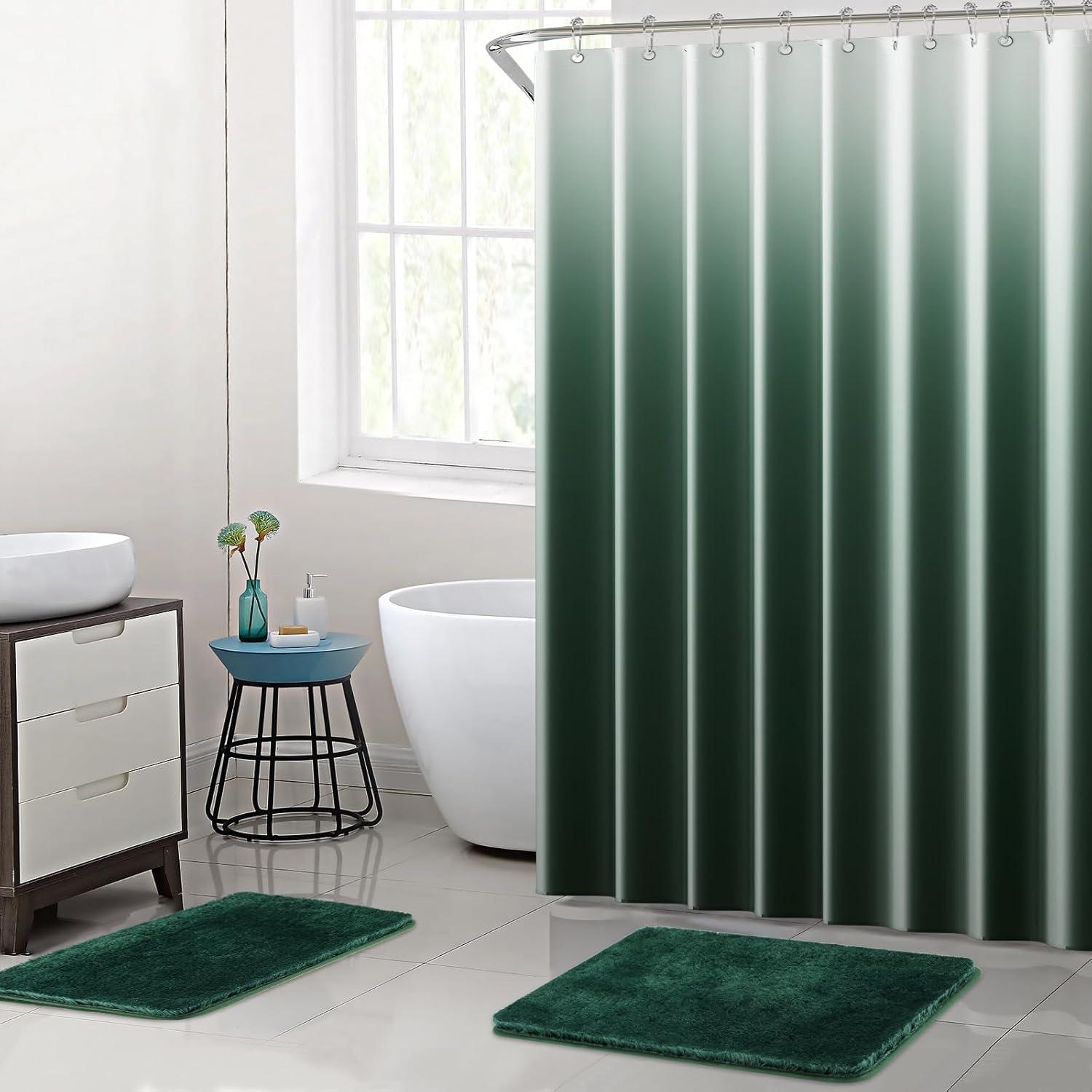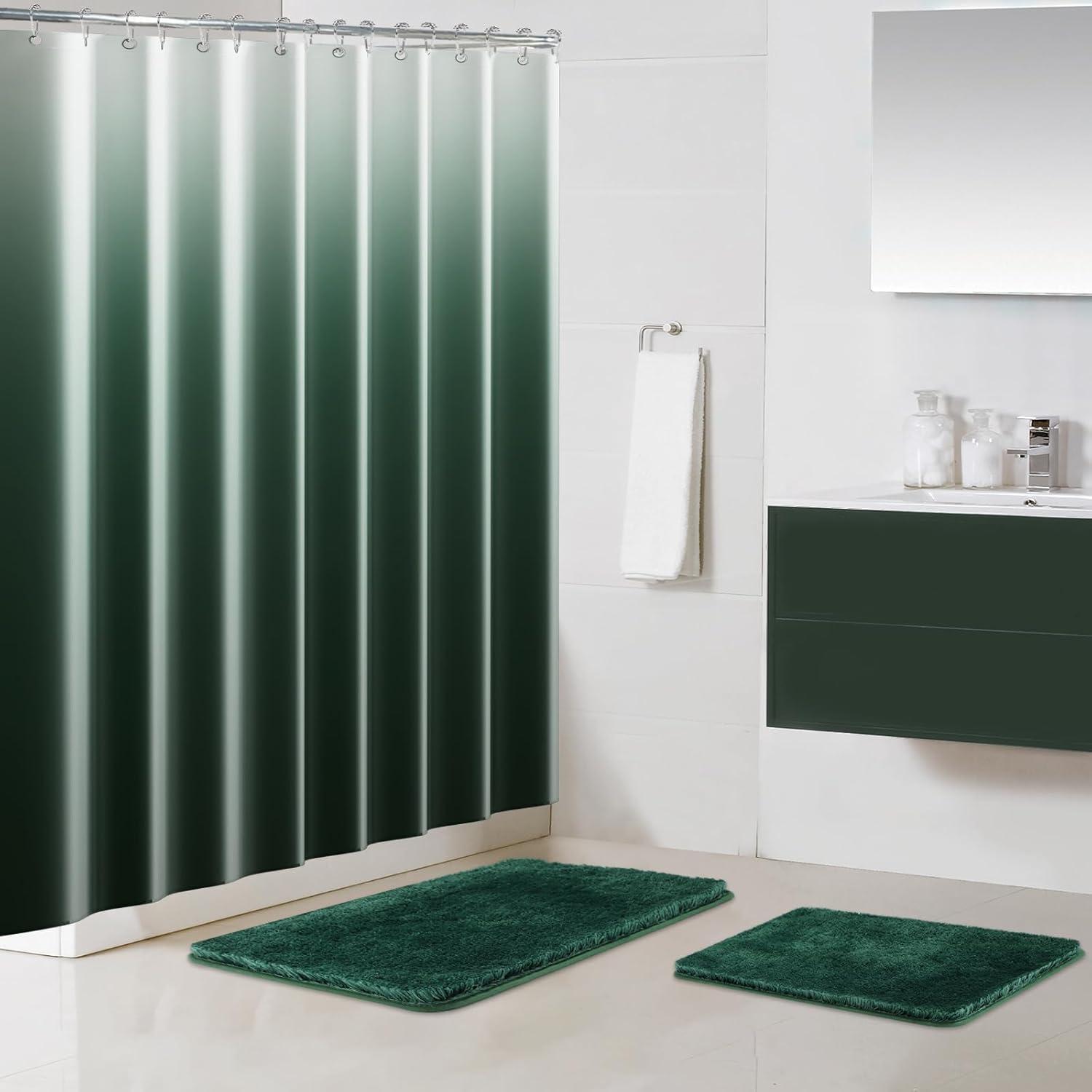 Bathroom Accessories Set - Beige Bathroom Sets with Shower Curtain and Rugs, 14PC Shower Curtain Set with Stainless Steel Hooks, Beige Bathroom Sets Complete for Home(Dark Green)