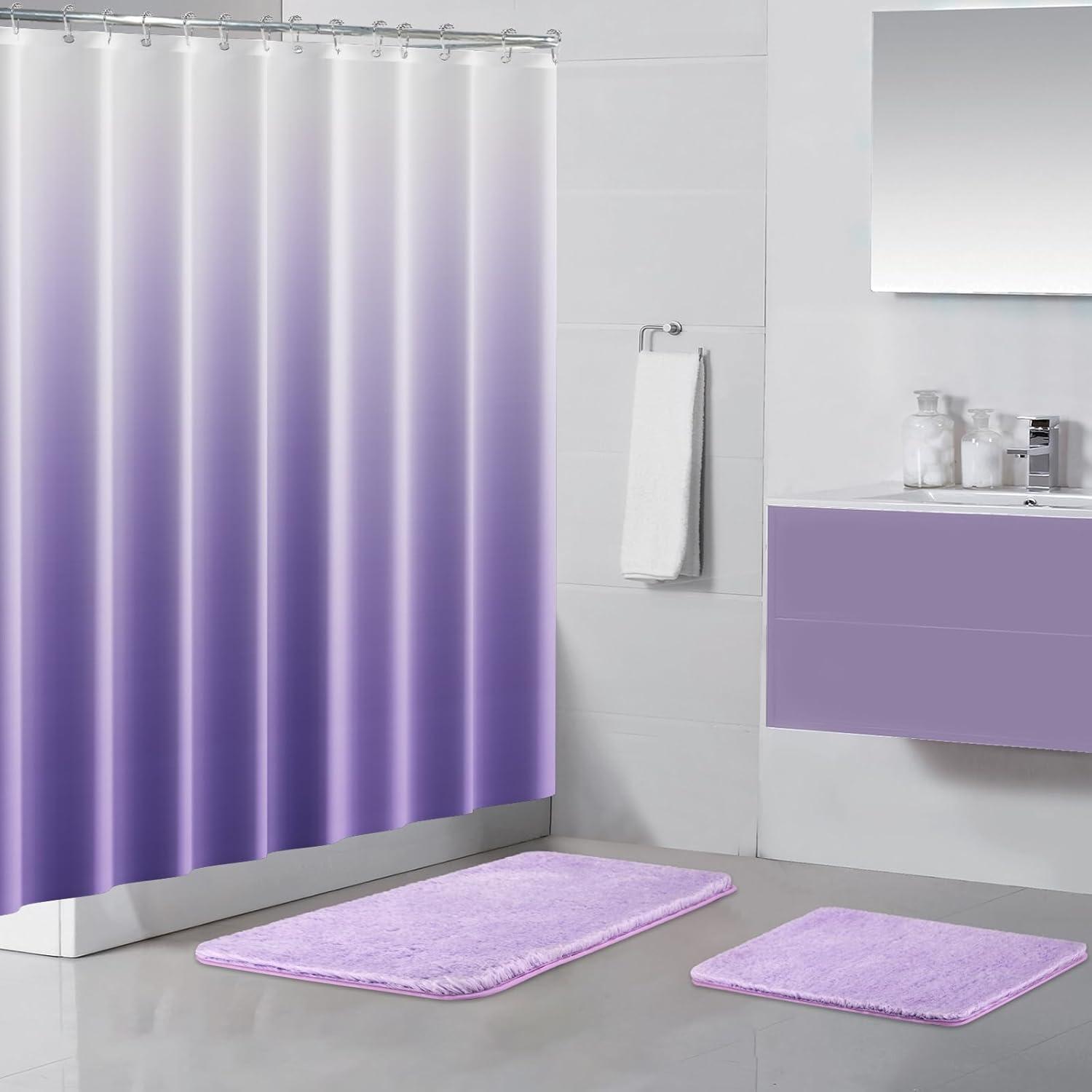 Bathroom Accessories Set - Beige Bathroom Sets with Shower Curtain and Rugs, 14PC Shower Curtain Set with Stainless Steel Hooks, Beige Bathroom Sets Complete for Home(Light Purple)