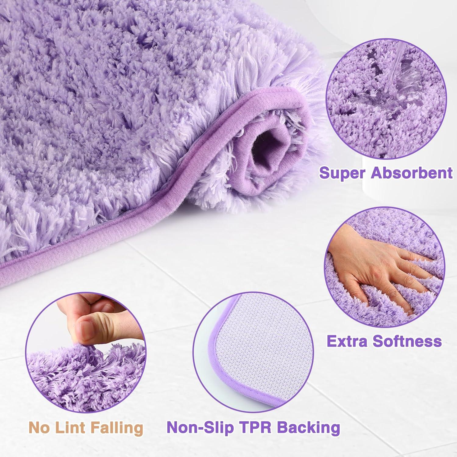 Soft and Comfortable Bathroom Rugs: Our bathroom rugs are made of soft microfiber material, with over one inch of fiber plush that provides excellent softness and comfort, making you feel like you're stepping on clouds. Soothes and warms your feet after a shower and protects your toes from cold floors.