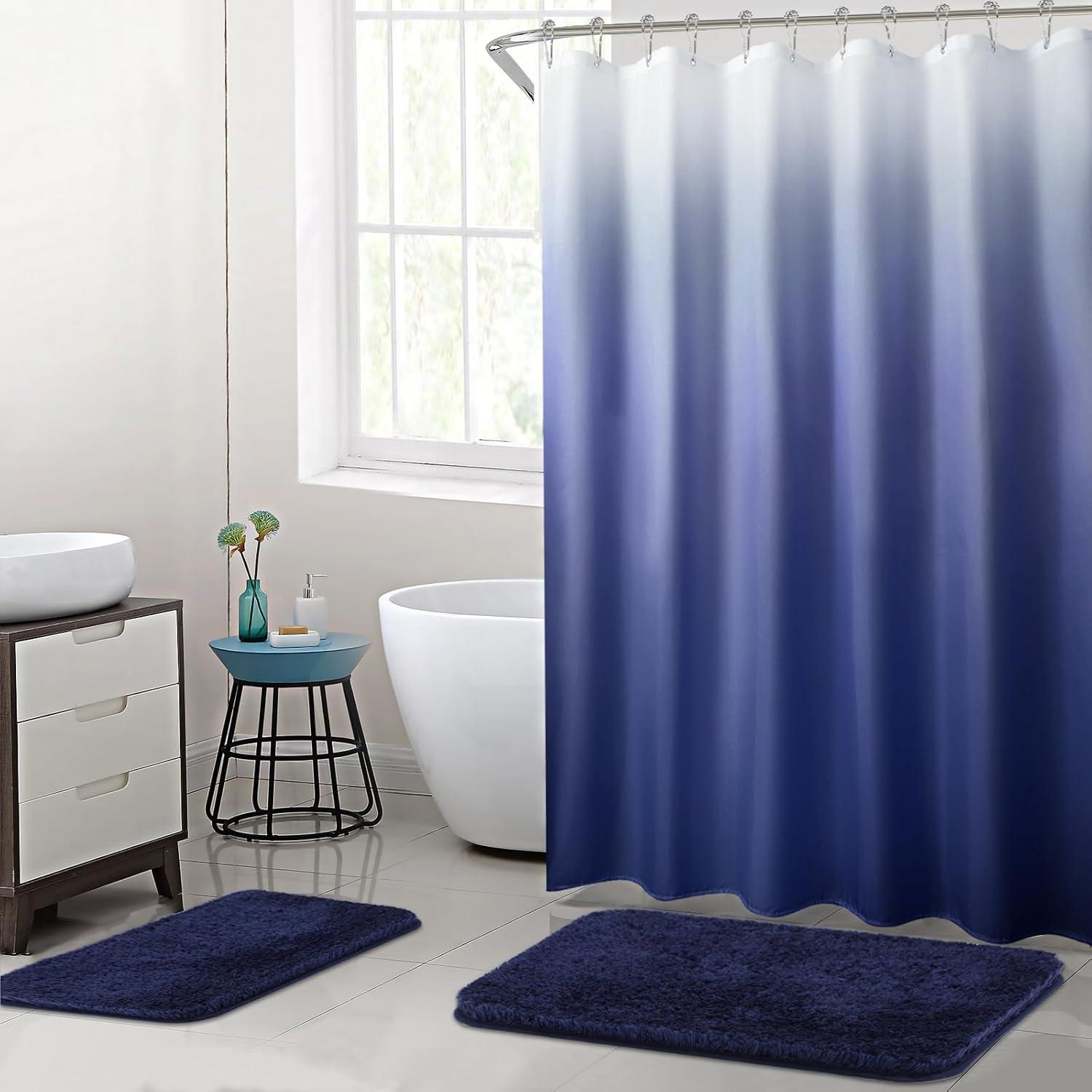 Bathroom Accessories Sets Complete: 1 pcs 72 x 72 inch beige ombre shower curtain with 12Pcs stainless steel hooks, 1 pcs 15.75 x 23.6 inch bathroom rug, 1 pcs 19.7 x 31.5 inch bathroom rug. The ideal size fits the needs of most people bathrooms. It is an ideal holiday gift for your friends or loved one. Having a new and comfortable bathroom starts with having a beautiful and functional shower curtain set.