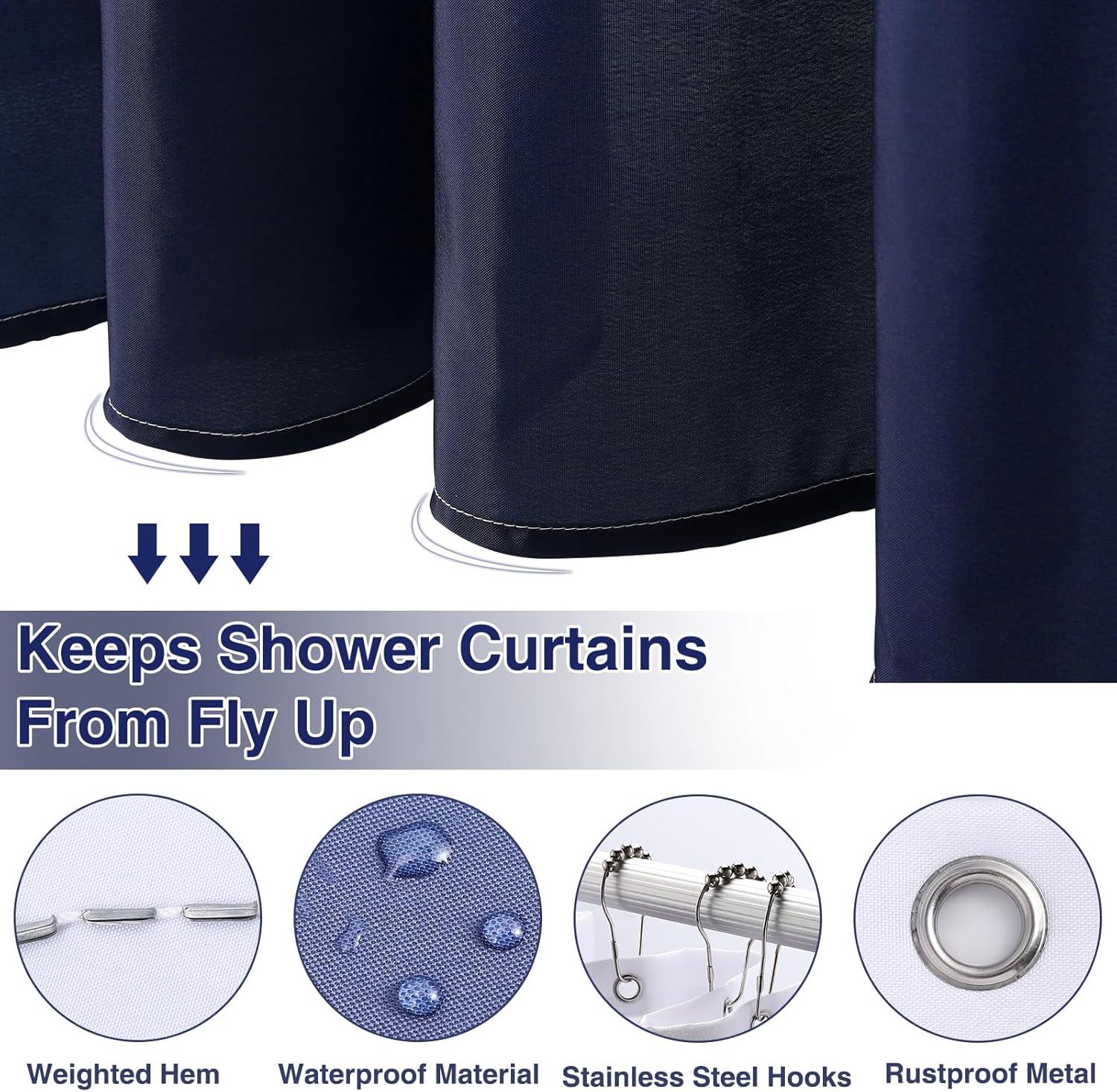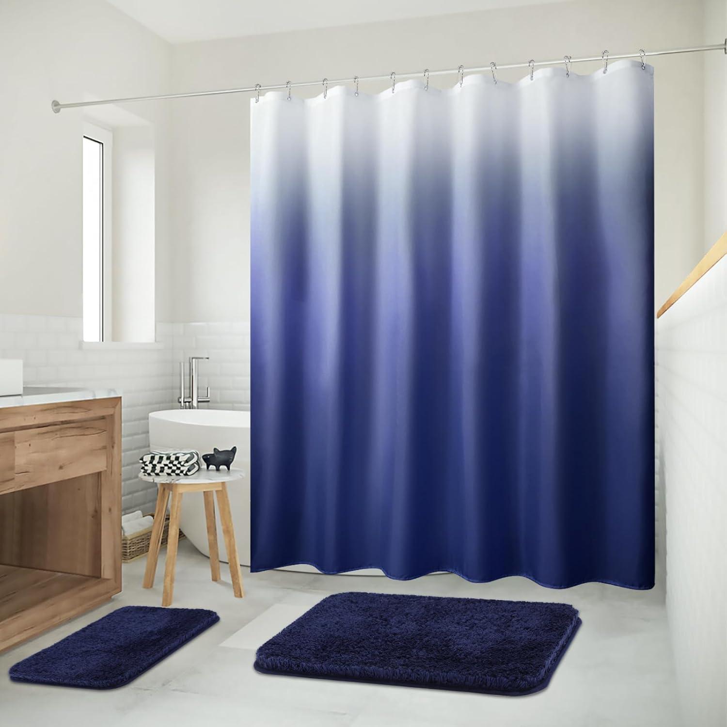 Bathroom Accessories Set - Beige Bathroom Sets with Shower Curtain and Rugs, 14PC Shower Curtain Set with Stainless Steel Hooks, Beige Bathroom Sets Complete for Home(Navy Blue)