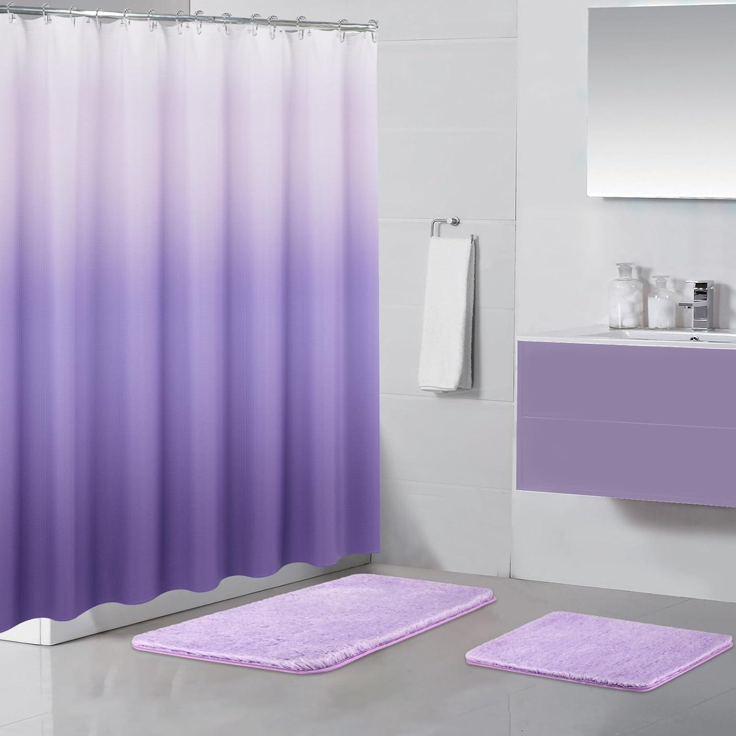 Bathroom Accessories Sets Complete: 1 pcs 72 x 72 inch beige ombre shower curtain with 12Pcs stainless steel hooks, 1 pcs 15.75 x 23.6 inch bathroom rug, 1 pcs 19.7 x 31.5 inch bathroom rug. The ideal size fits the needs of most people bathrooms. It is an ideal holiday gift for your friends or loved one. Having a new and comfortable bathroom starts with having a beautiful and functional shower curtain set.