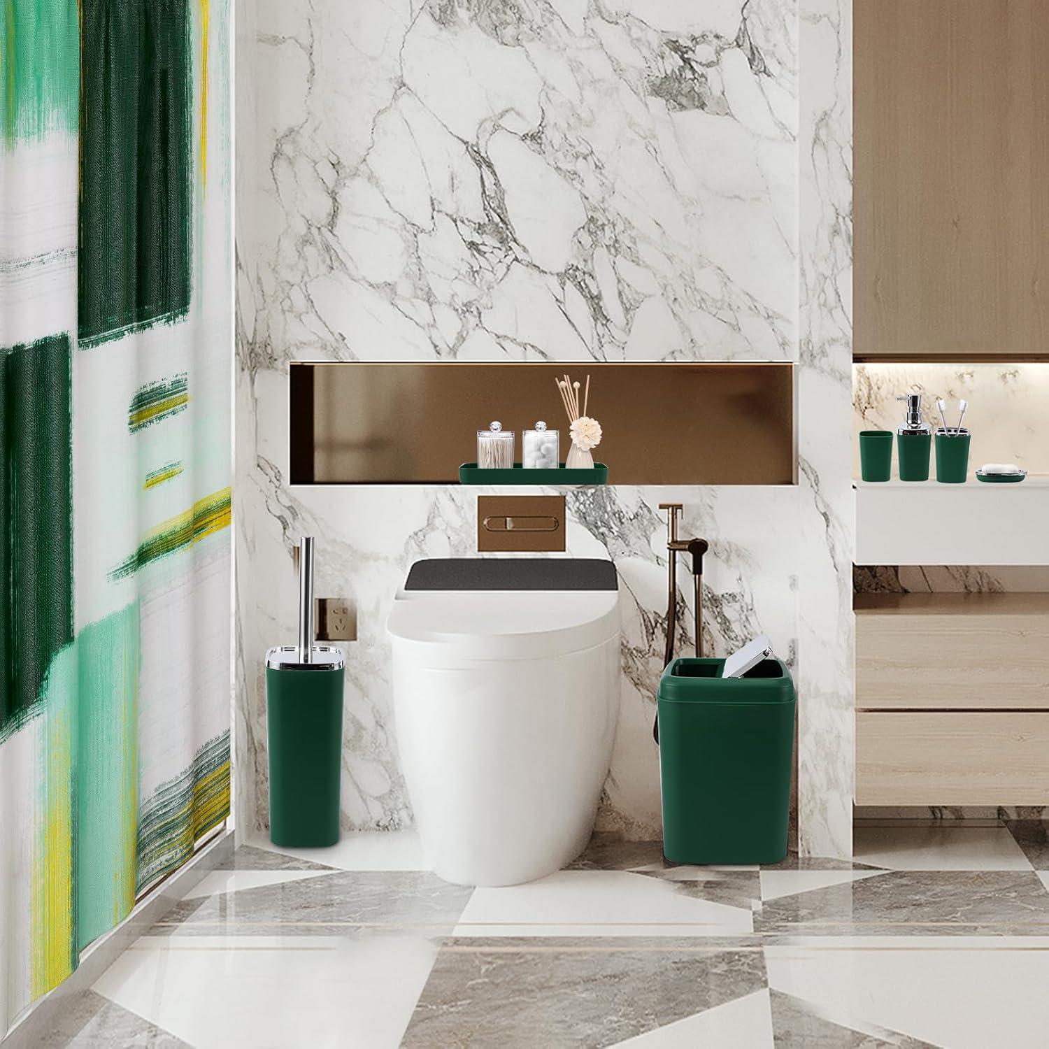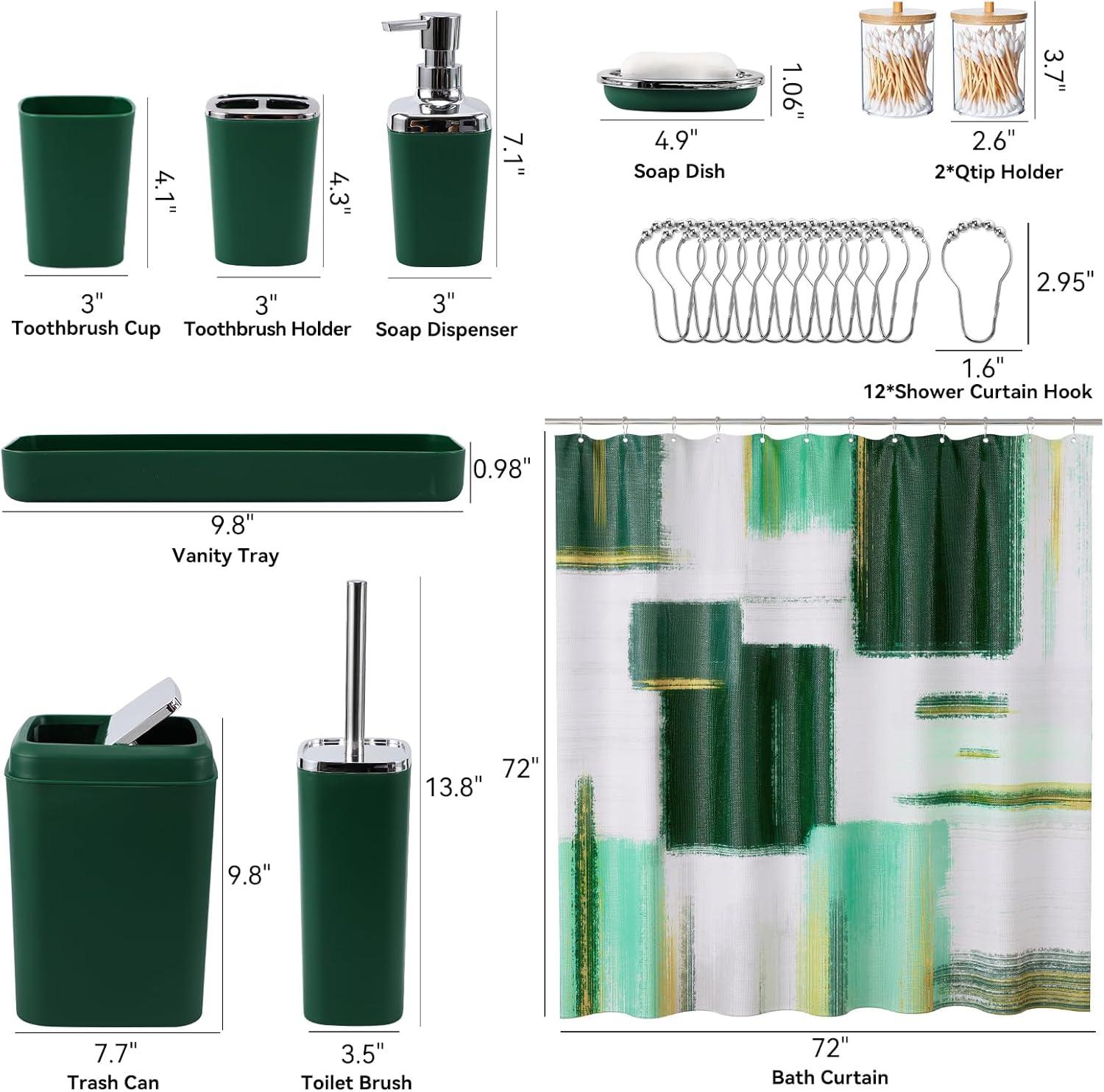 Bathroom Set - Orange Bathroom Accessories Set, Bathroom Sets with Shower Curtain and Rugs, Orange Shower Curtain Set with Bathroom Trash Can, Soap Dispenser, Soap Dish for Home Decor(Green)