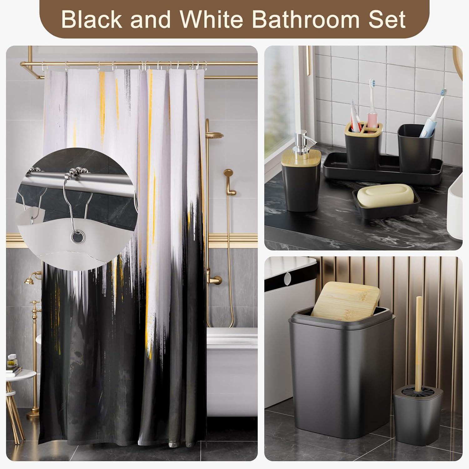 EYE-CATCHING DESIGN: The smooth surface bathroom set is easy to clean and organize, making your bathroom stylish and beautiful. The sparkling shower curtain uses Tight stitching, and thick fabric to provide a beautiful and generous texture for the shower curtain. FLUFFY SOFTNESS luxurious bathroom rugs especially convenient for tasks like bathing kids, provide beautiful décor to nearly any space in your bathroom. It also will be a great gift for a housewarming or a wedding.