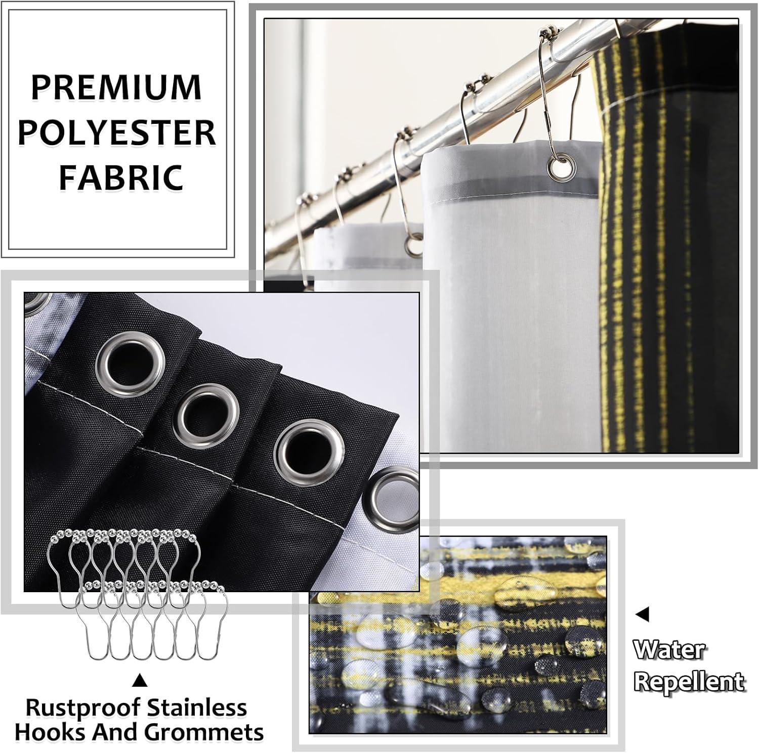 Shower Curtain Set: The shower curtain made from 100% polyester fabric material, has good waterproof and dries quickly, ensuring long-term use. Adopts high-definition pattern printing technology, rich in colors and vivid, Not easy to fade.