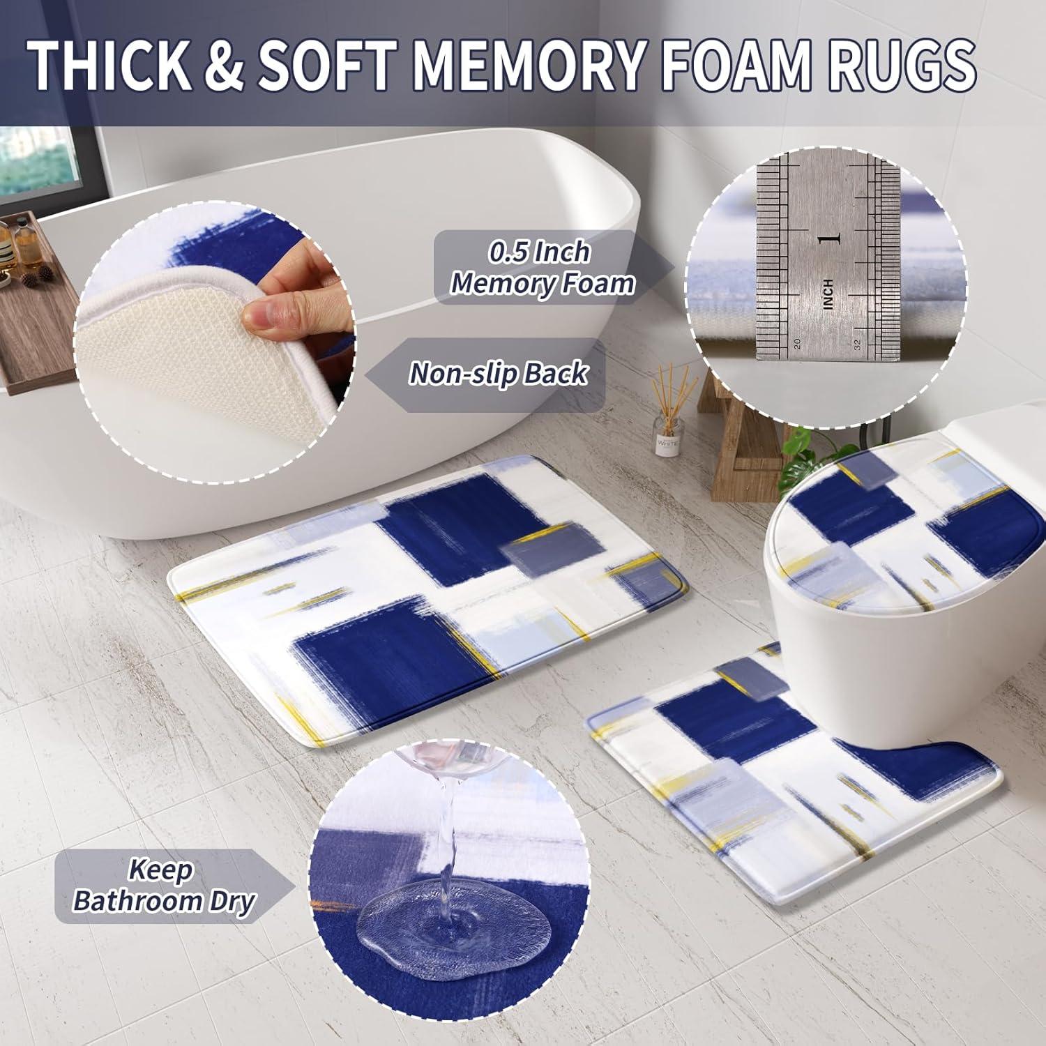 Bathroom Sets with Shower Curtain and Rugs - Luxury Black Bathroom Accessories Set, Shower Curtain Set, Non-Slip Bathroom Rug, Black and Gold Bathroom Decor for Home(Navy Blue)