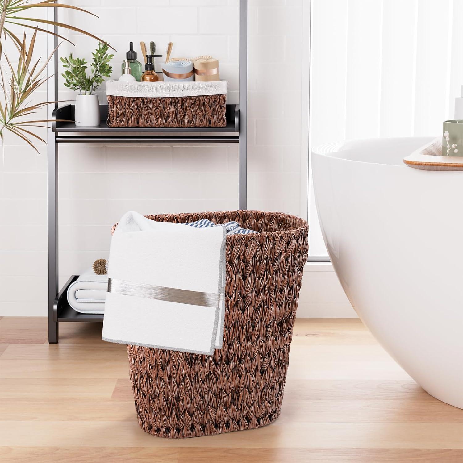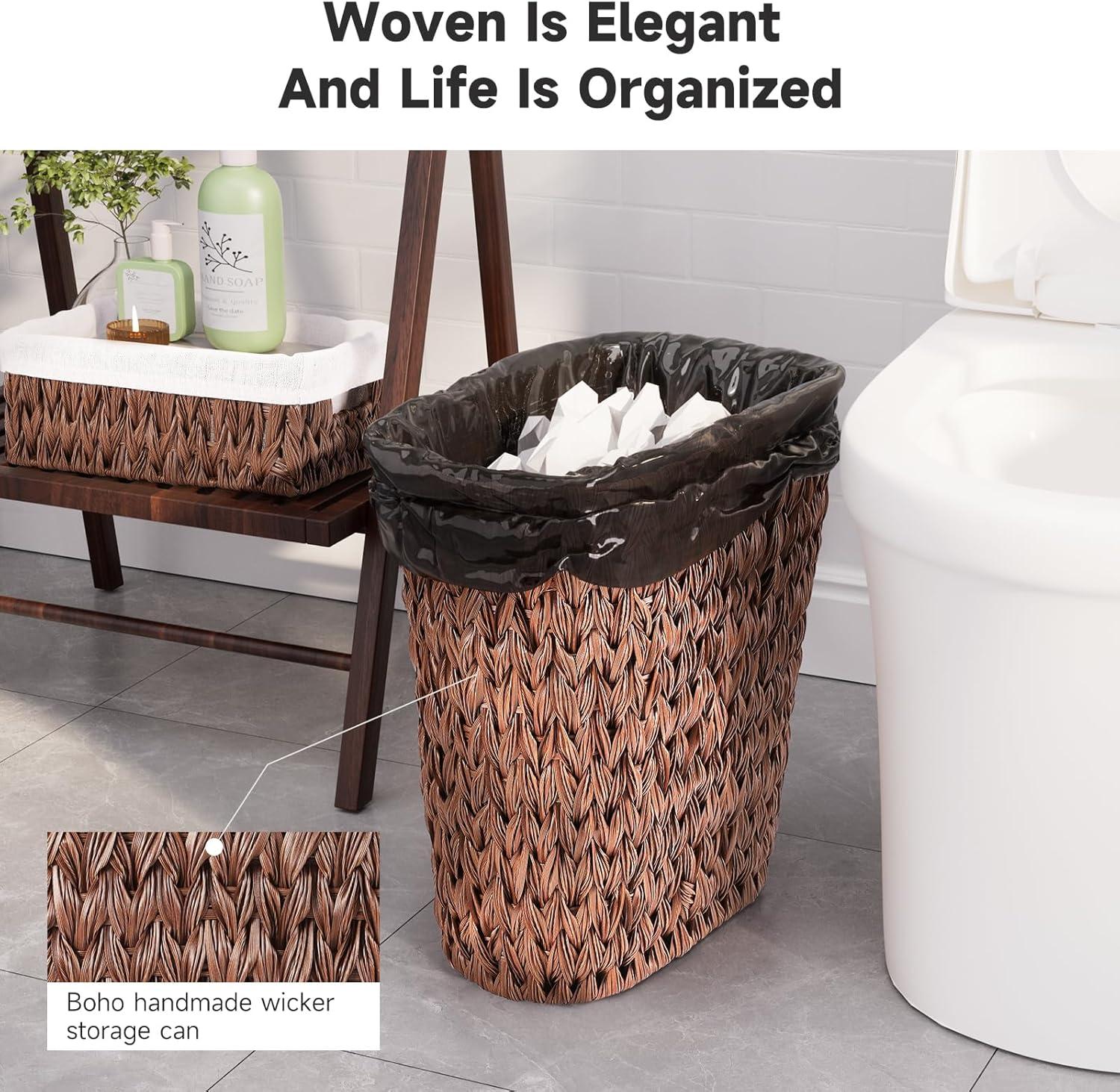 imageBathroom Trash Can with Wicker Storage Baskets12 Liter32Gallon Small Trash Can Handwoven Waste Basket Narrow Small Garbage Can for Bedroom BathroomOffice