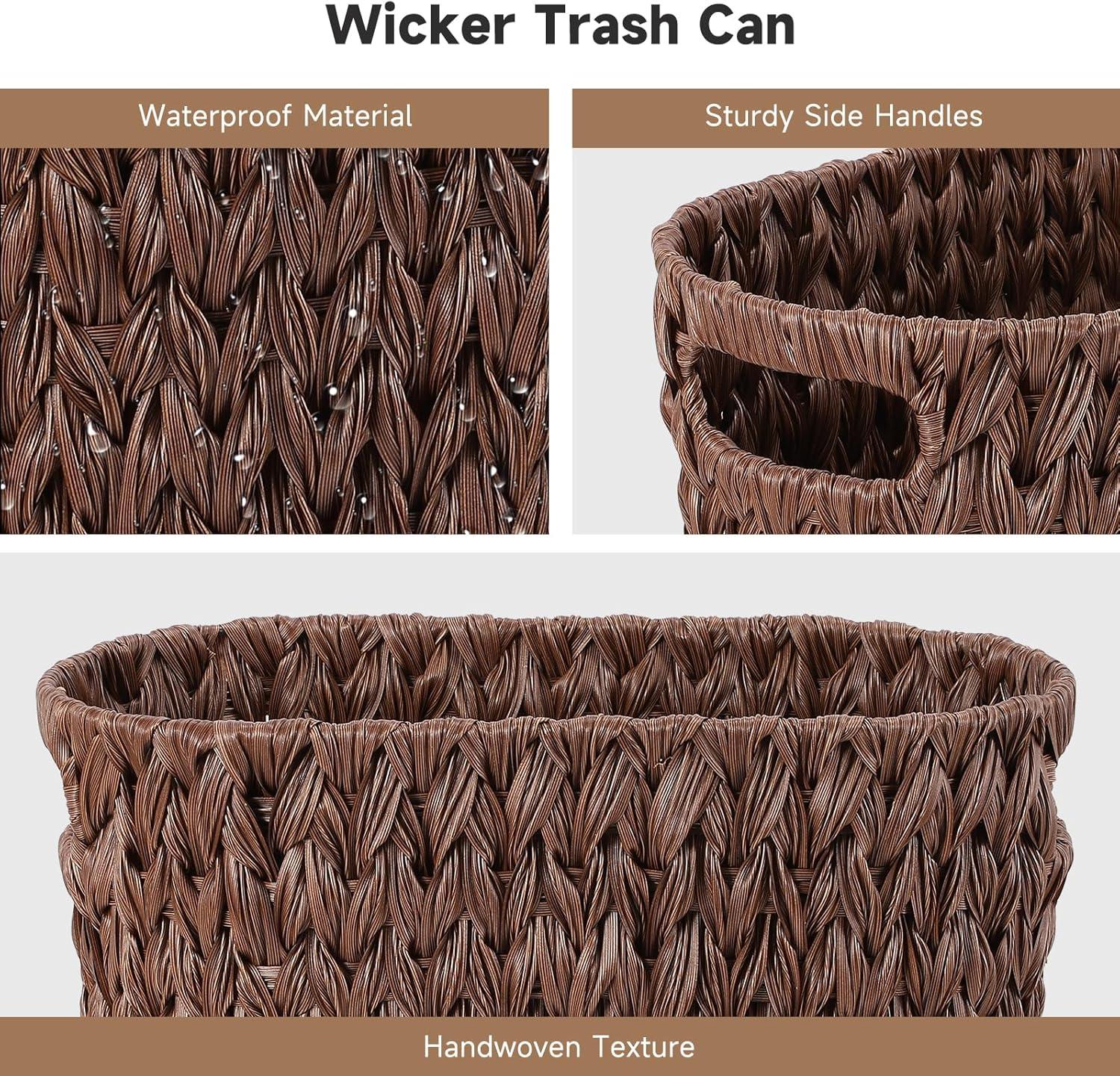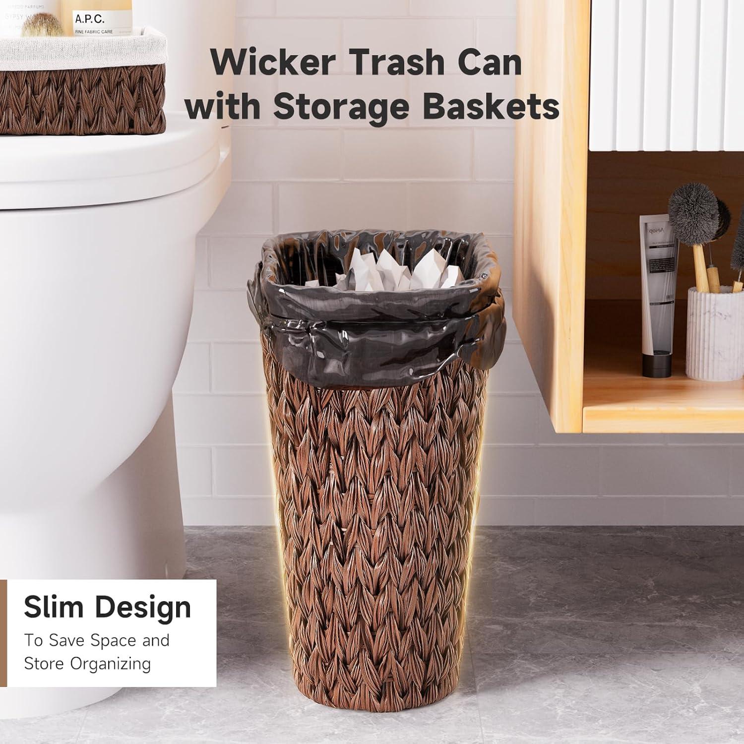 Bathroom Trash Can with Wicker Storage Baskets,12 Liter/3.2Gallon Small Trash Can Handwoven Waste Basket Narrow Small Garbage Can for Bedroom, Bathroom,Office