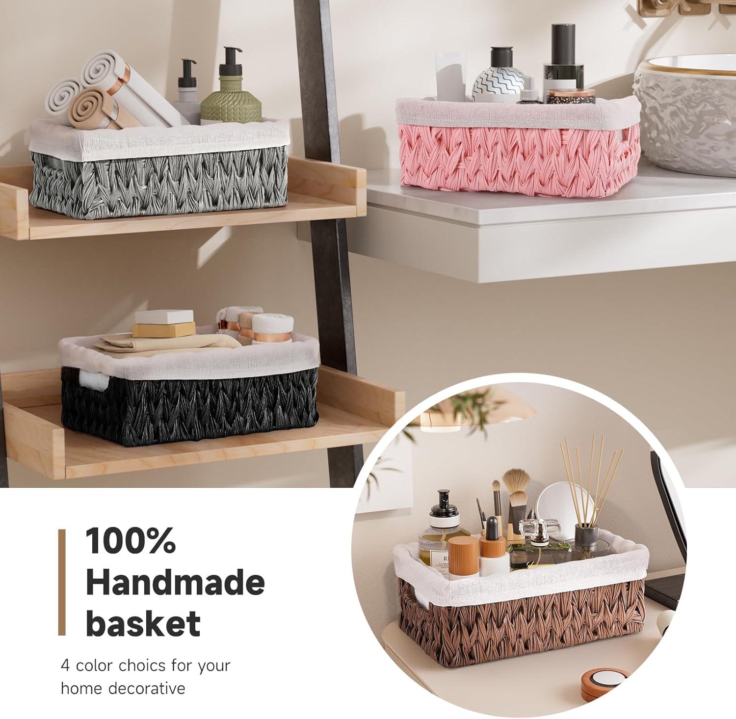 [Multiple-use & Compact storage basket]: The Handmade storage basket neatly fits on top of toilet tanks for a handy place to stash bathroom toiletries and accessories;Slim design allows this basket not only can be used in your bathroom it also can be used in living room, guest room, kitchen, office etc.All the miscellaneous things in daily life can be used for storage use this basket.