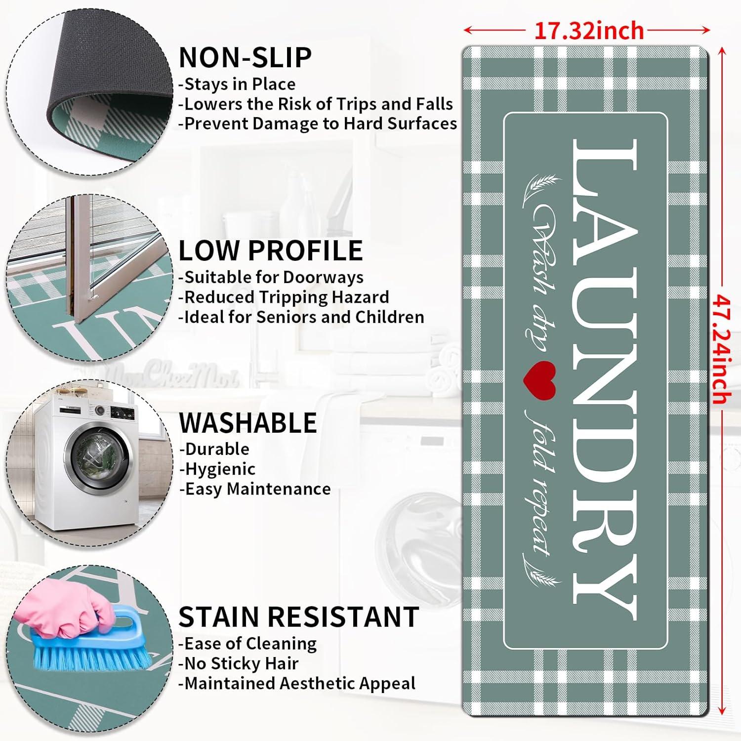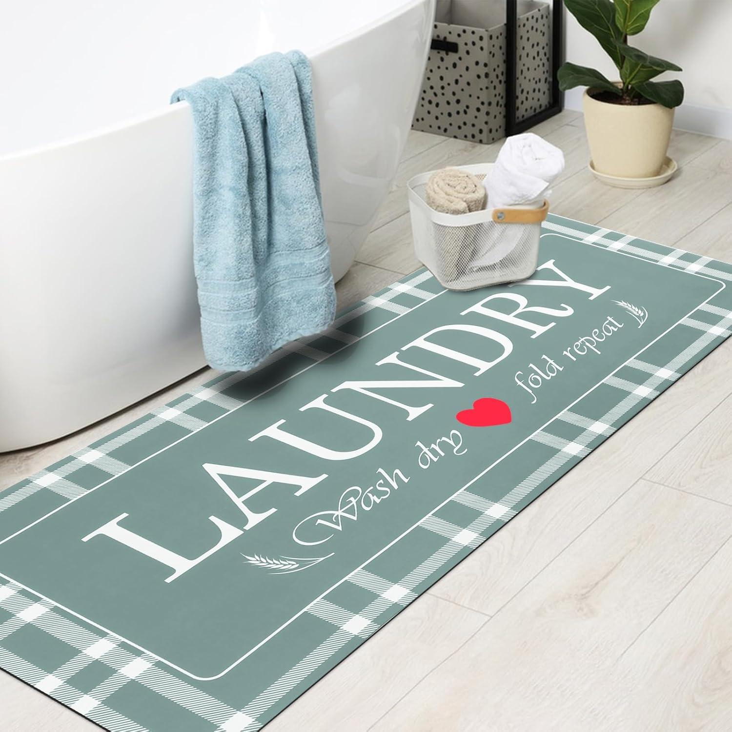 【Versatile Mat】Mixed with farmhouse and modern style, this laundry runner rug is an ideal laundry room decor. Besides, you can also use it as a bathroom mat for home and hotel, a runner rug for bedroom and hallway, a welcome mat for front door, etc