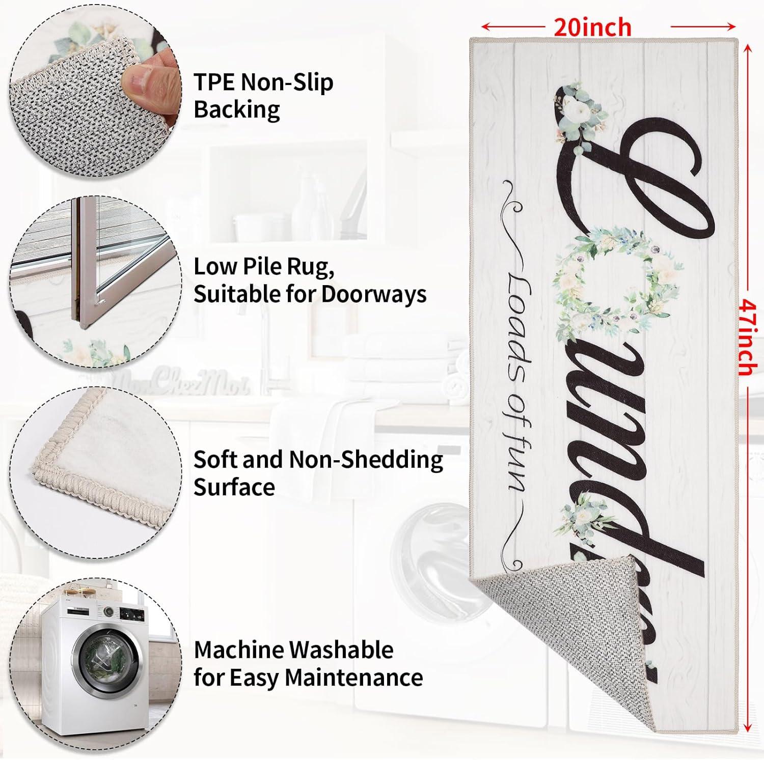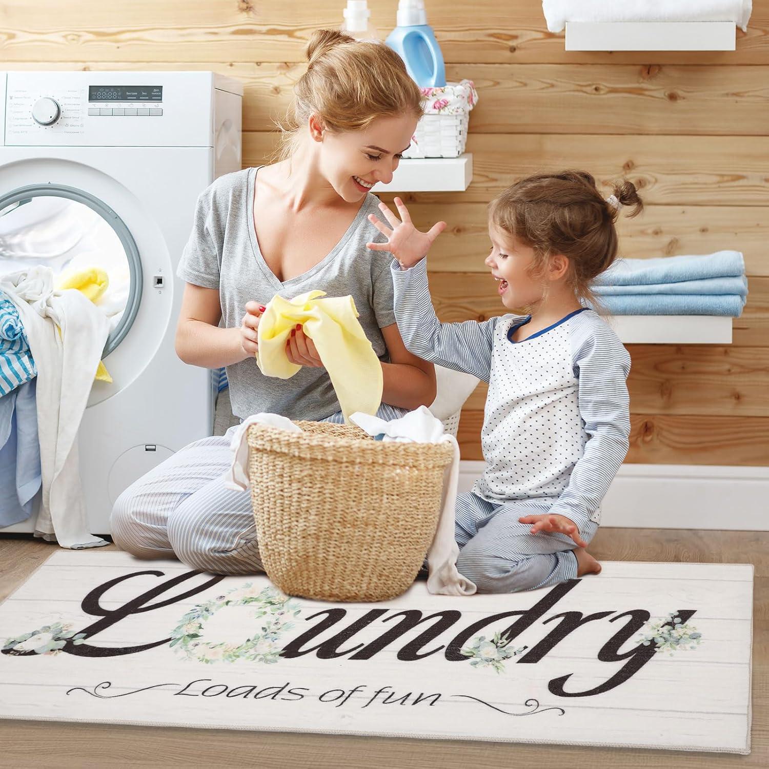 【Versatile Mat】Mixed with farmhouse and modern style, this laundry runner rug is an ideal laundry room decor. Besides, you can also use it as a bathroom mat for home and hotel, a runner rug for bedroom and hallway, a welcome mat for front door, etc