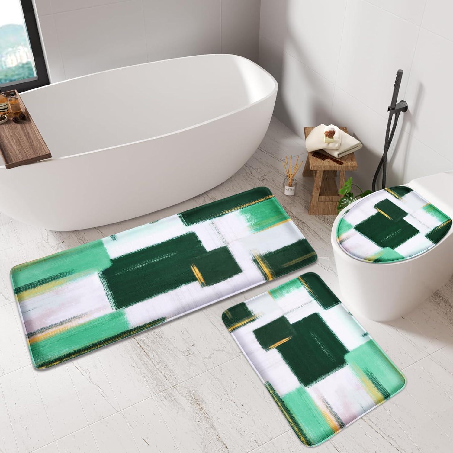 【Bathroom Rugs Set 5 pieces】The Bathroom rugs included 19.7″ x 46″ bathroom runner rug, 19.7″ x 31.5″ large bath rugs, 15.7″ x 23.6″ medium bath mat, 15.7″ x 19.7″ U-Shaped toilet rug and 15.7″ x 17.7″ toilet cover rug. Available in several sizes and colors, these bath rugs will easily complement any bathroom decor.
