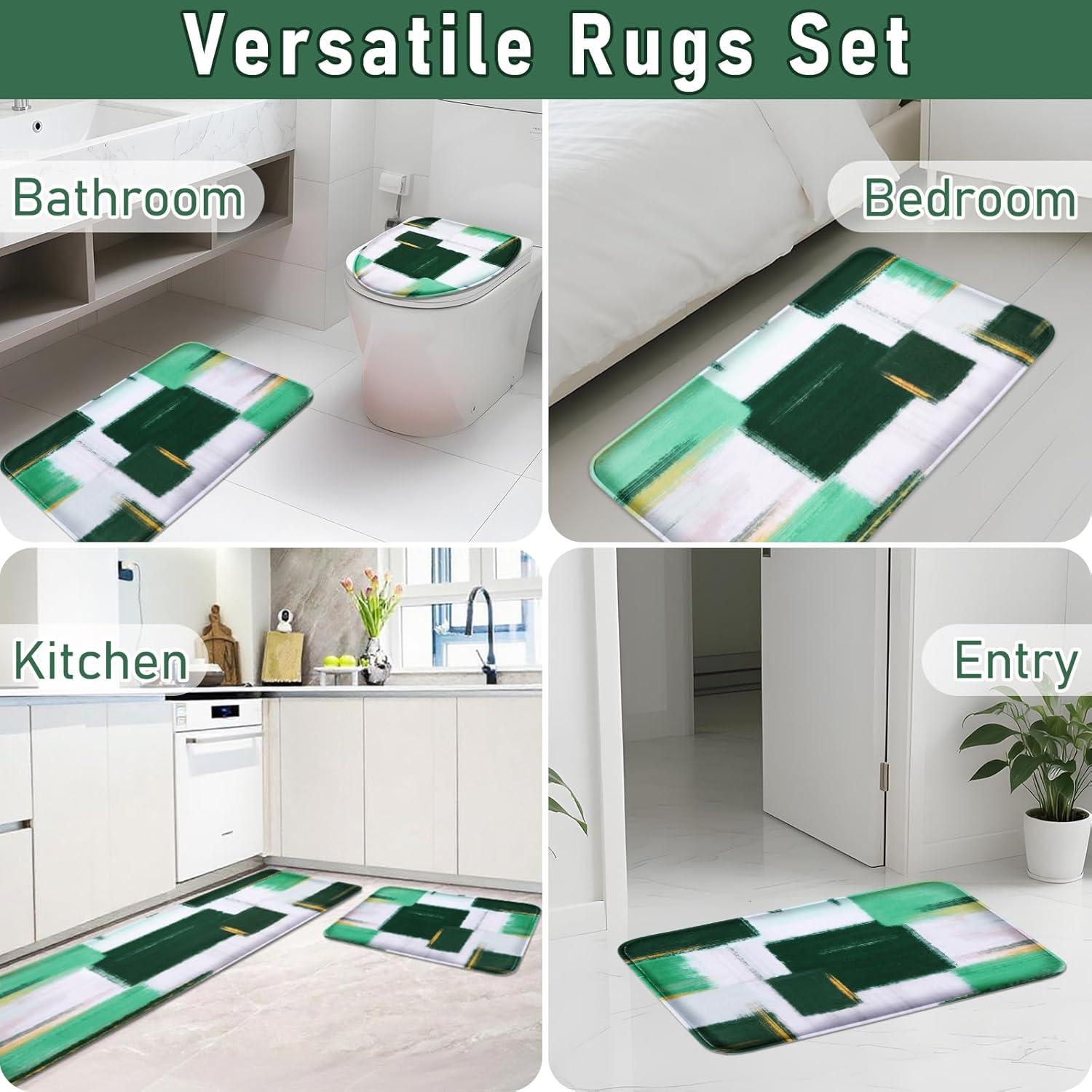 【Super Water Absorption】The plush surface quickly absorbs moisture, allowing the bath mat set to quickly absorb moisture from your feet when you step out of the tub or shower, keeping your floor dry. Bathroom floor mat perfect for bathtubs, shower doors, bathroom entryways, sinks, and toilets.