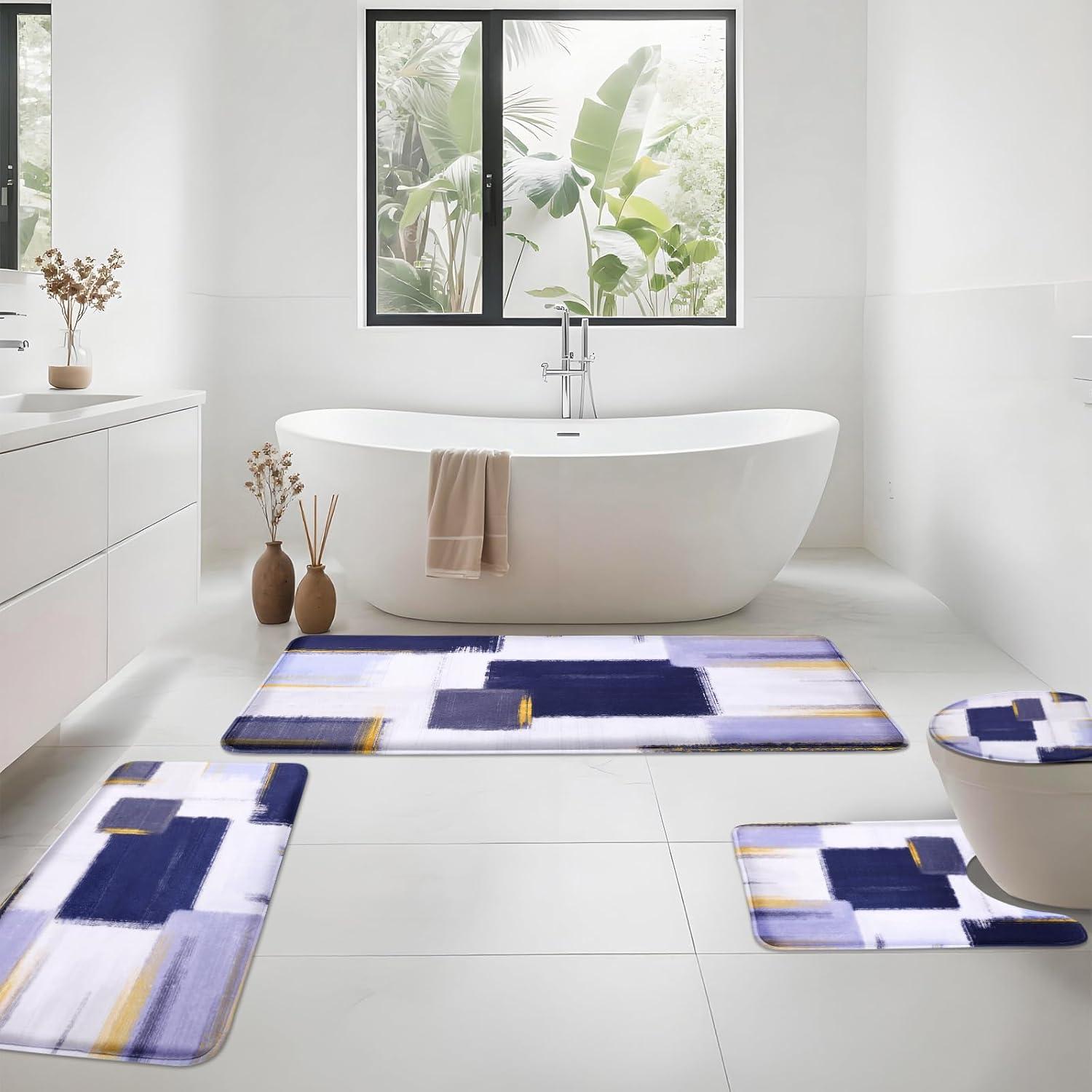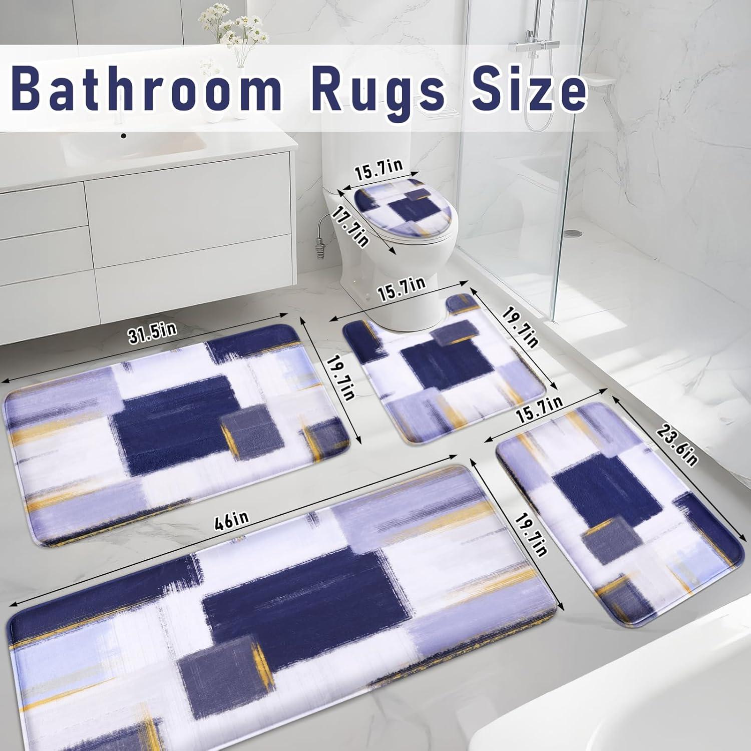 【Bathroom Rugs Set 5 pieces】The Bathroom rugs included 19.7″ x 46″ bathroom runner rug, 19.7″ x 31.5″ large bath rugs, 15.7″ x 23.6″ medium bath mat, 15.7″ x 19.7″ U-Shaped toilet rug and 15.7″ x 17.7″ toilet cover rug. Available in several sizes and colors, these bath rugs will easily complement any bathroom decor.