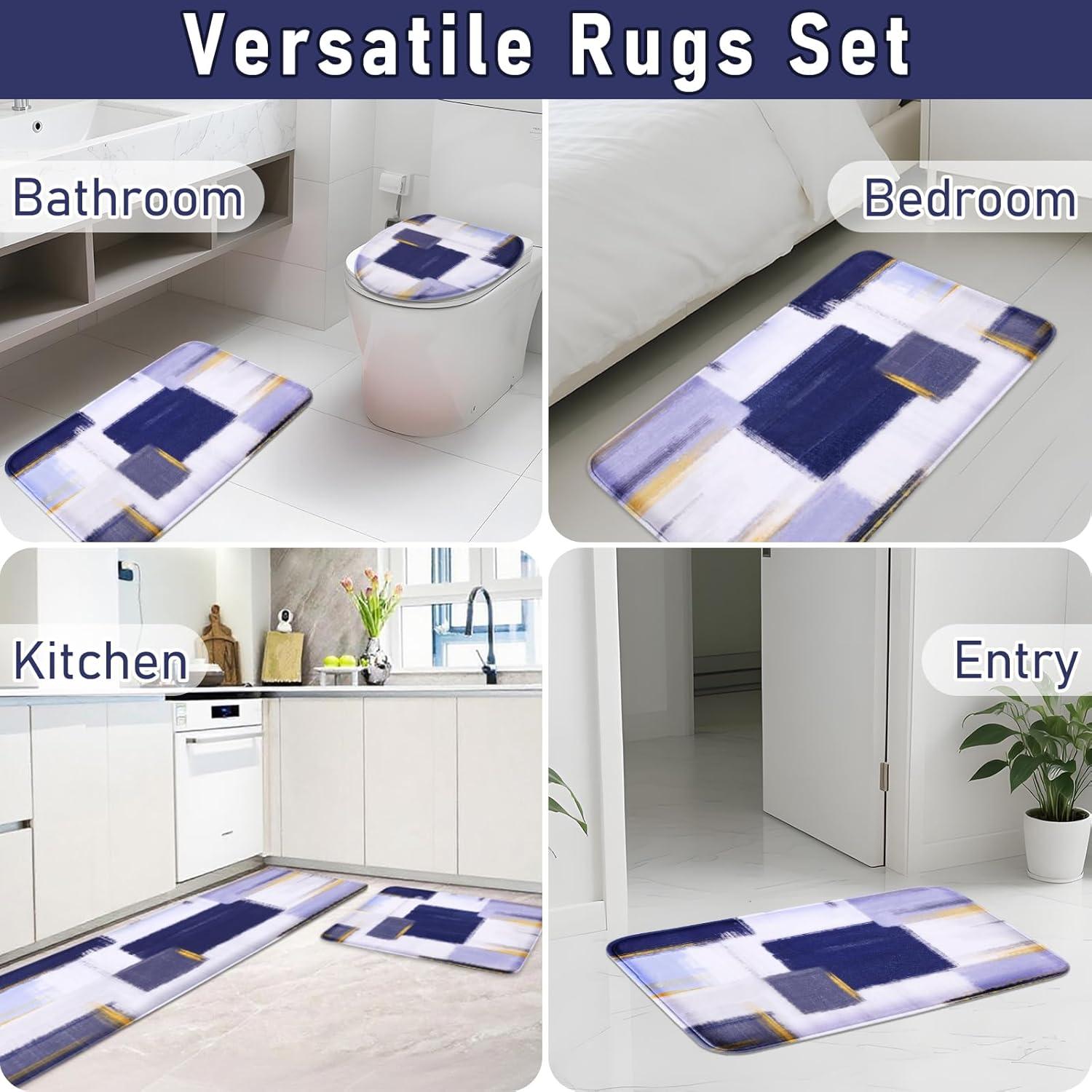 【Super Water Absorption】The plush surface quickly absorbs moisture, allowing the bath mat set to quickly absorb moisture from your feet when you step out of the tub or shower, keeping your floor dry. Bathroom floor mat perfect for bathtubs, shower doors, bathroom entryways, sinks, and toilets.