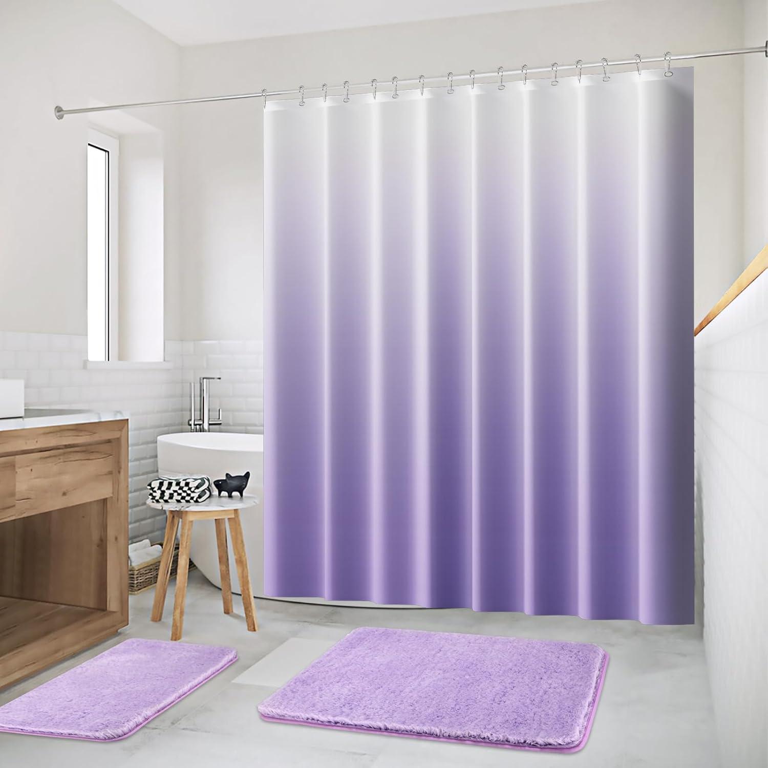 Bathroom Accessories Sets Complete: 1 pcs 72 x 72 inch ombre shower curtain with 12Pcs stainless steel hooks, 1 pcs 15.75 x 23.6 inch bathroom rug, 1 pcs 19.7 x 31.5 inch bathroom rug