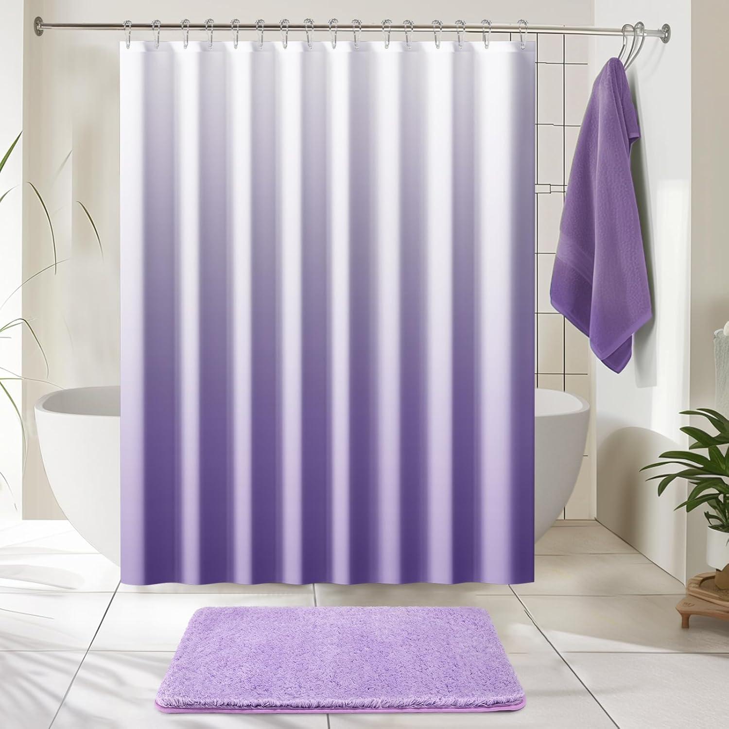 Waterproof and Durable Ombre Shower Curtain: Made of 100% waffle fabric shower curtain with 12 stainless steel hooks, not easy to tear and more durable, shower curtain set is waterproof and dries quickly, easy to clean making it a hassle-free addition to any bathroom