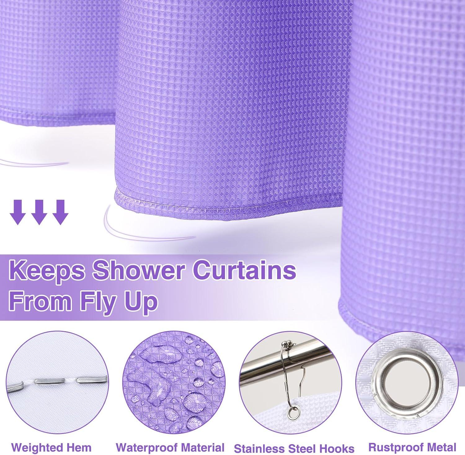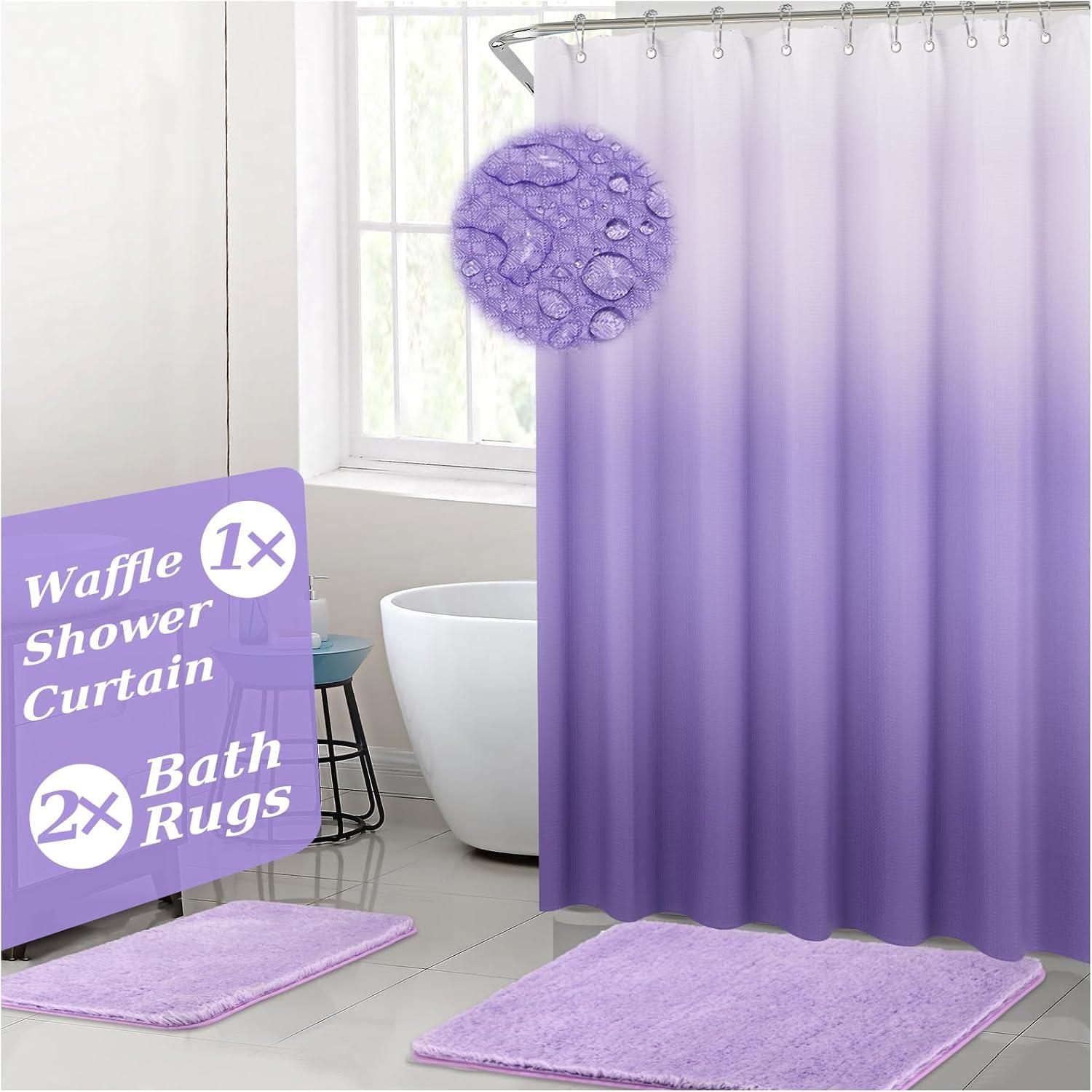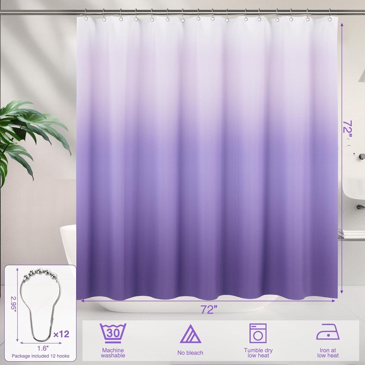 Waterproof and Durable Ombre Shower Curtain: Made of 100% waffle fabric shower curtain with 12 stainless steel hooks, not easy to tear and more durable, shower curtain set is waterproof and dries quickly, easy to clean making it a hassle-free addition to any bathroom