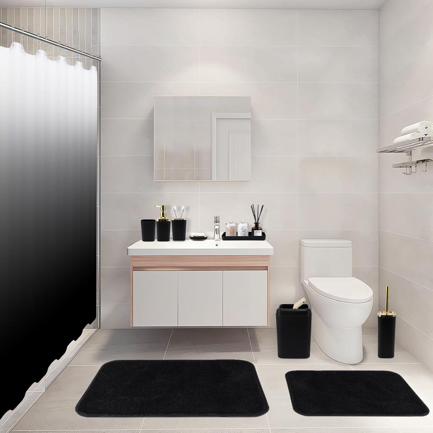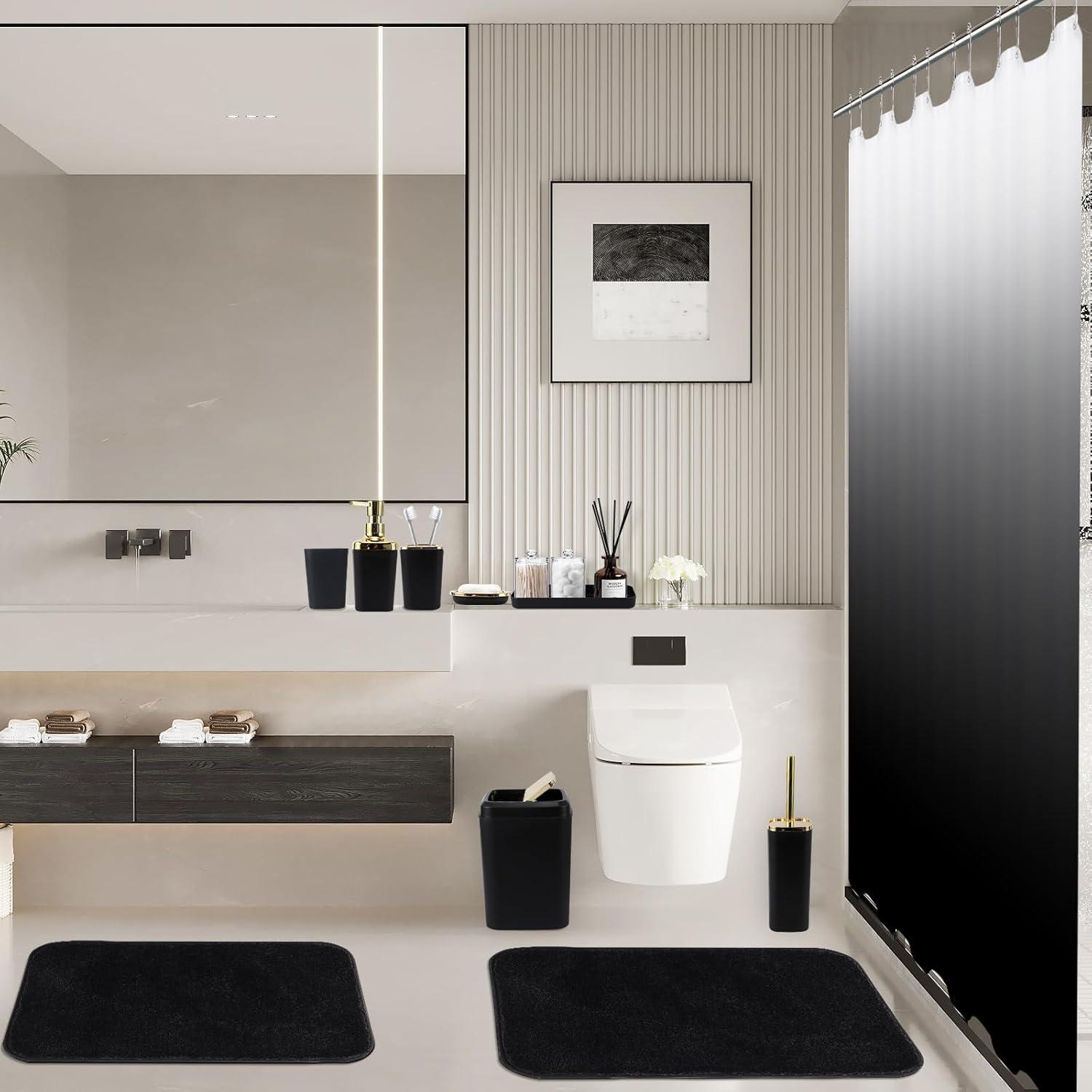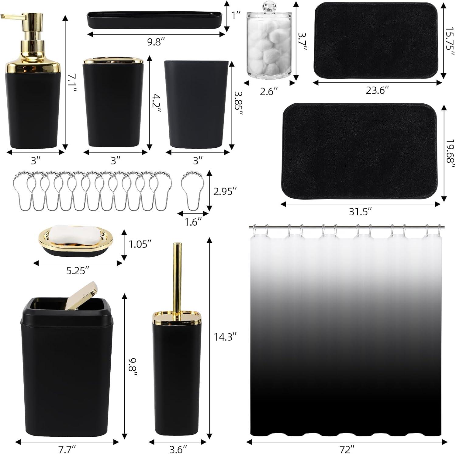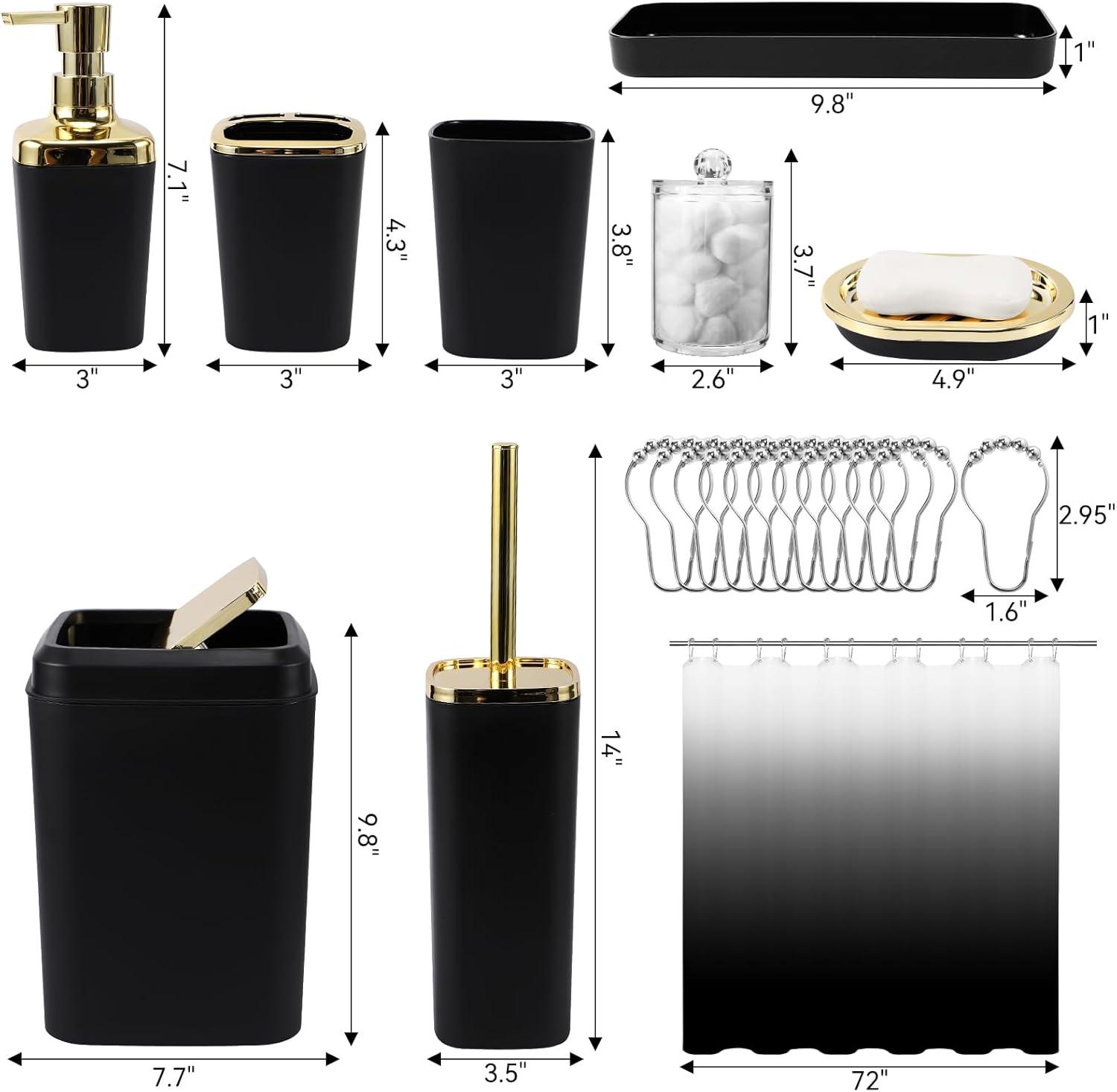 imageGrey Bathroom Accessories Sets Complete 9Piece Bathroom Accessories with Trash Can Vanity Tray Soap Dispenser Soap Dish Toothbrush Holder Toothbrush Cup Toilet Brush and Qtip HoldersBlackGold