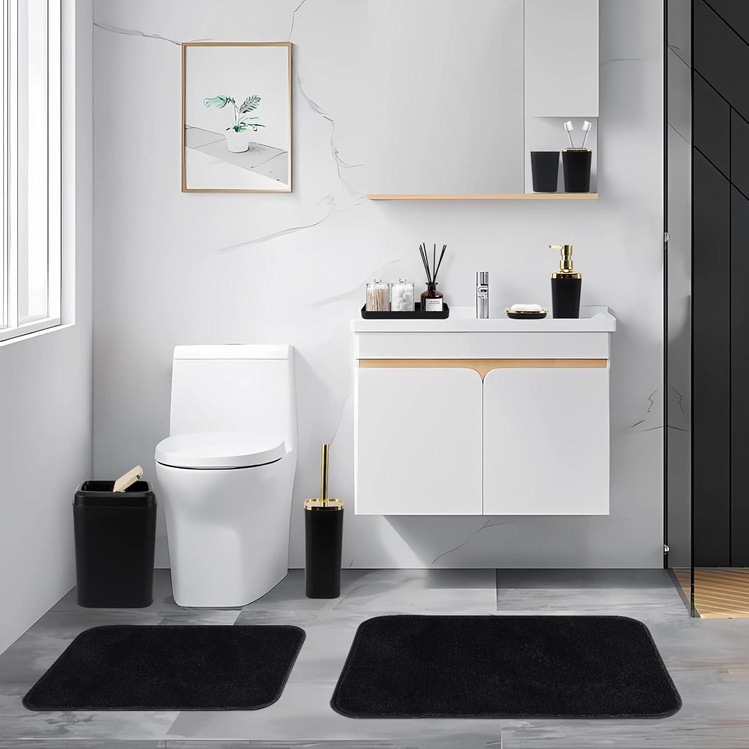 【BATHROOM ACCESSORY SET COMPLETE】Includes Toothbrush Holder, Toothbrush Cup, Soap Dispenser, Soap Dish, Bathroom Trash Can, Toilet Brush, Tray and 2 Qtip Holders. It will help you create a complete and unified bathroom style.