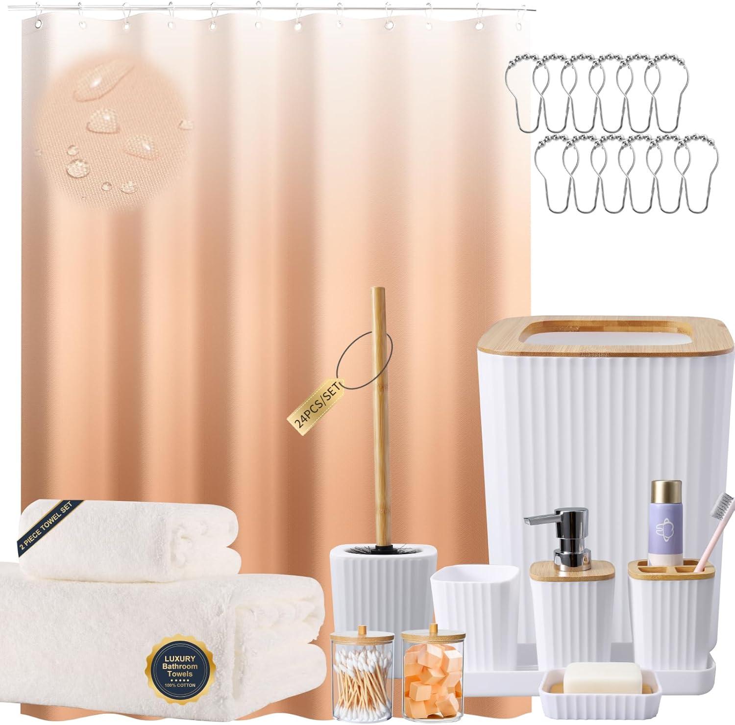 【WIDELY APPLICATION】Completed bathroom kit perfect for home bathroom, dorm, hotel, apartment, laundry room, basement, RV, housewarming/new home gift, etc. Stylish design makes it ideal for modern bathrooms, no matter it is for your families, friends or for your colleagues and customers, this bathroom accessories set is the perfect present.