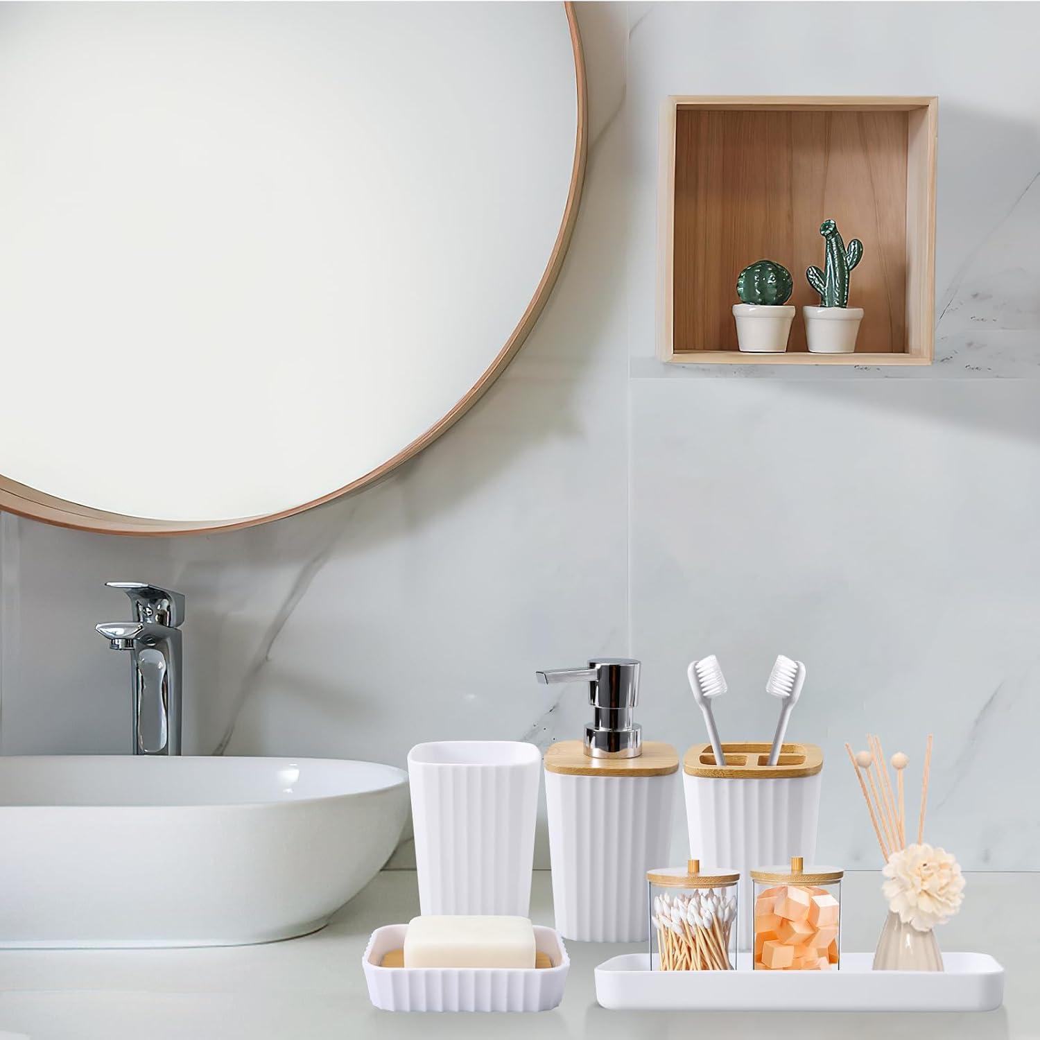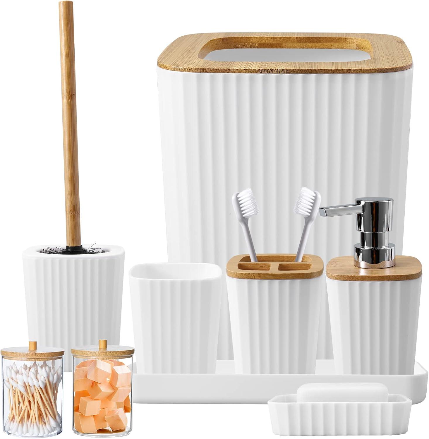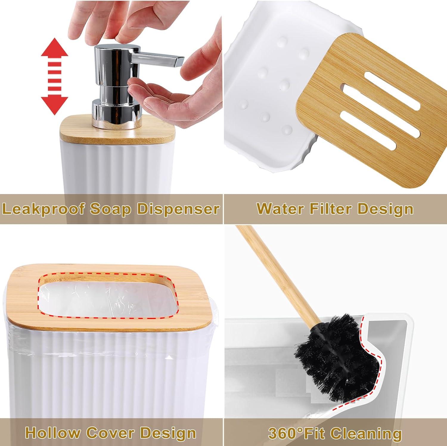 【HIGH QUALITY MATERIAL】Our grey bathroom accessories set is made of high-quality PP and ABS material, which is not easy to break, more durable and outperforms glass, ceramic, resin, wooden bathroom sets. Premium plastic white bathroom sets are durable and they will stay elegant and new over time.