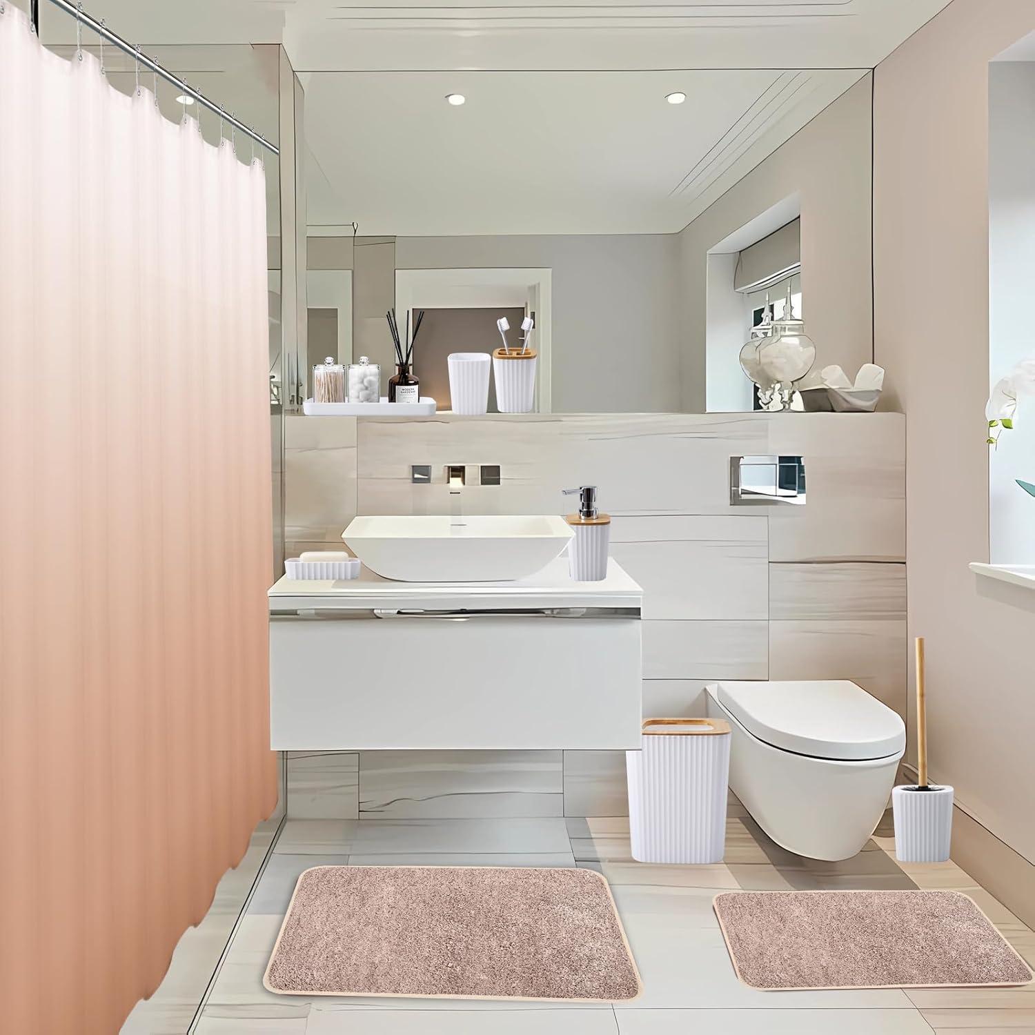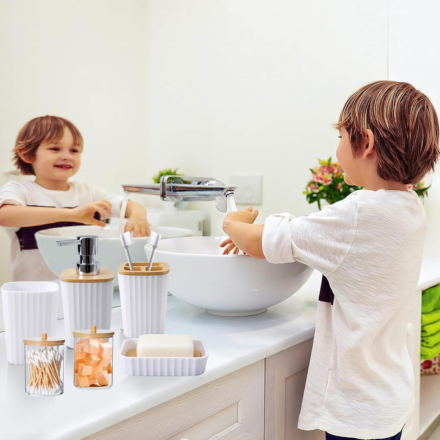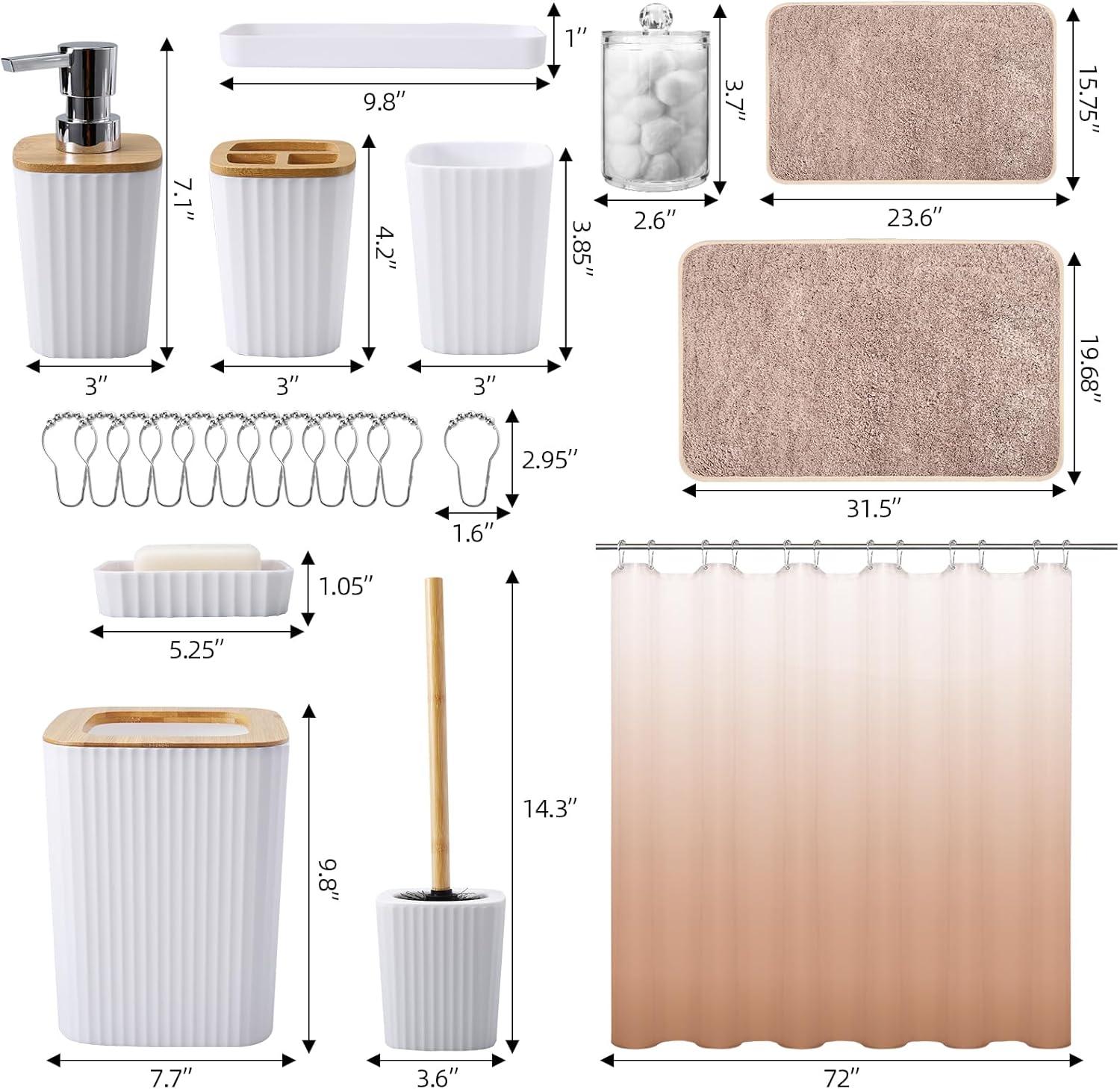 【HIGH QUALITY MATERIAL】Our grey bathroom accessories set is made of high-quality PP and ABS material, which is not easy to break, more durable and outperforms glass, ceramic, resin, wooden bathroom sets. Premium plastic white bathroom sets are durable and they will stay elegant and new over time.
