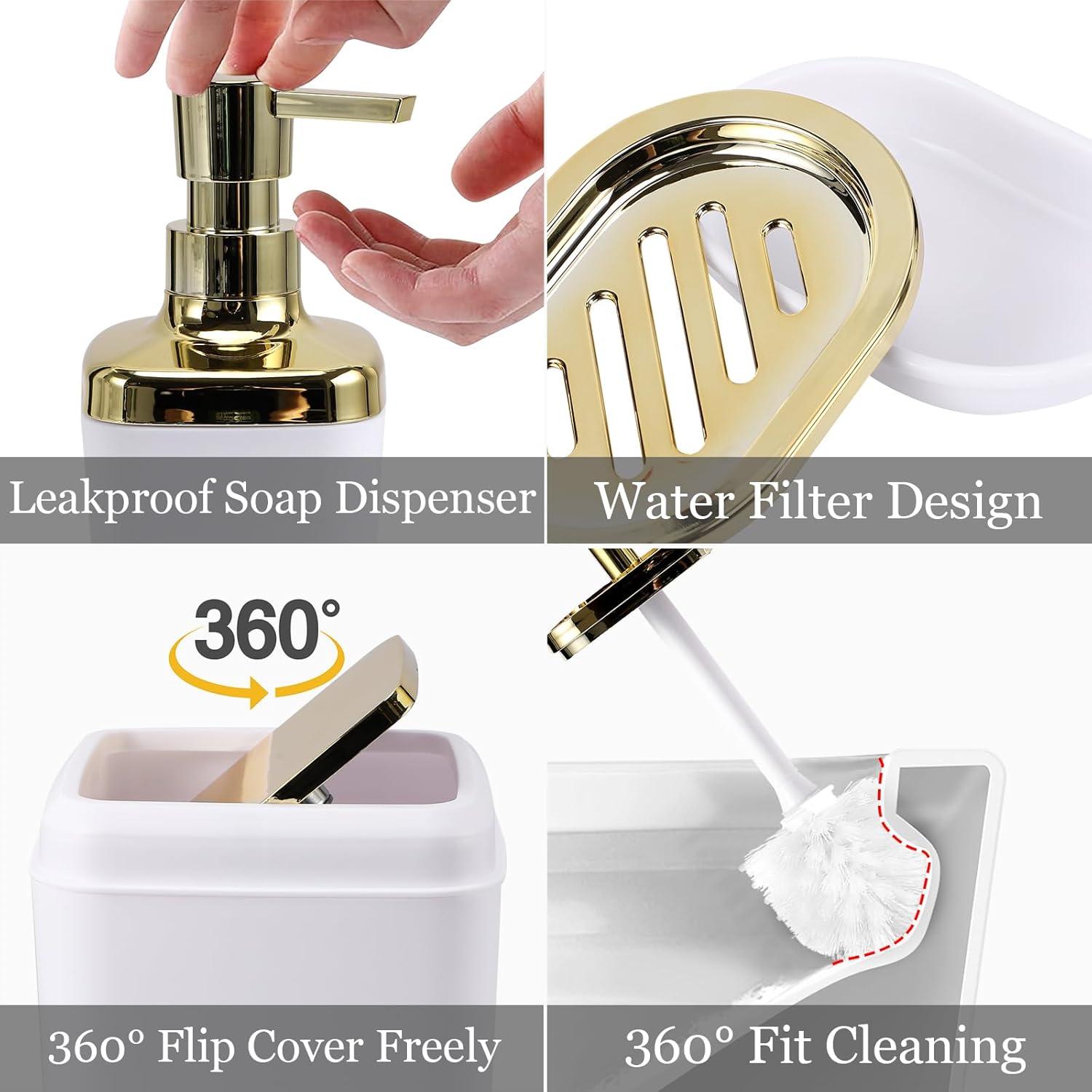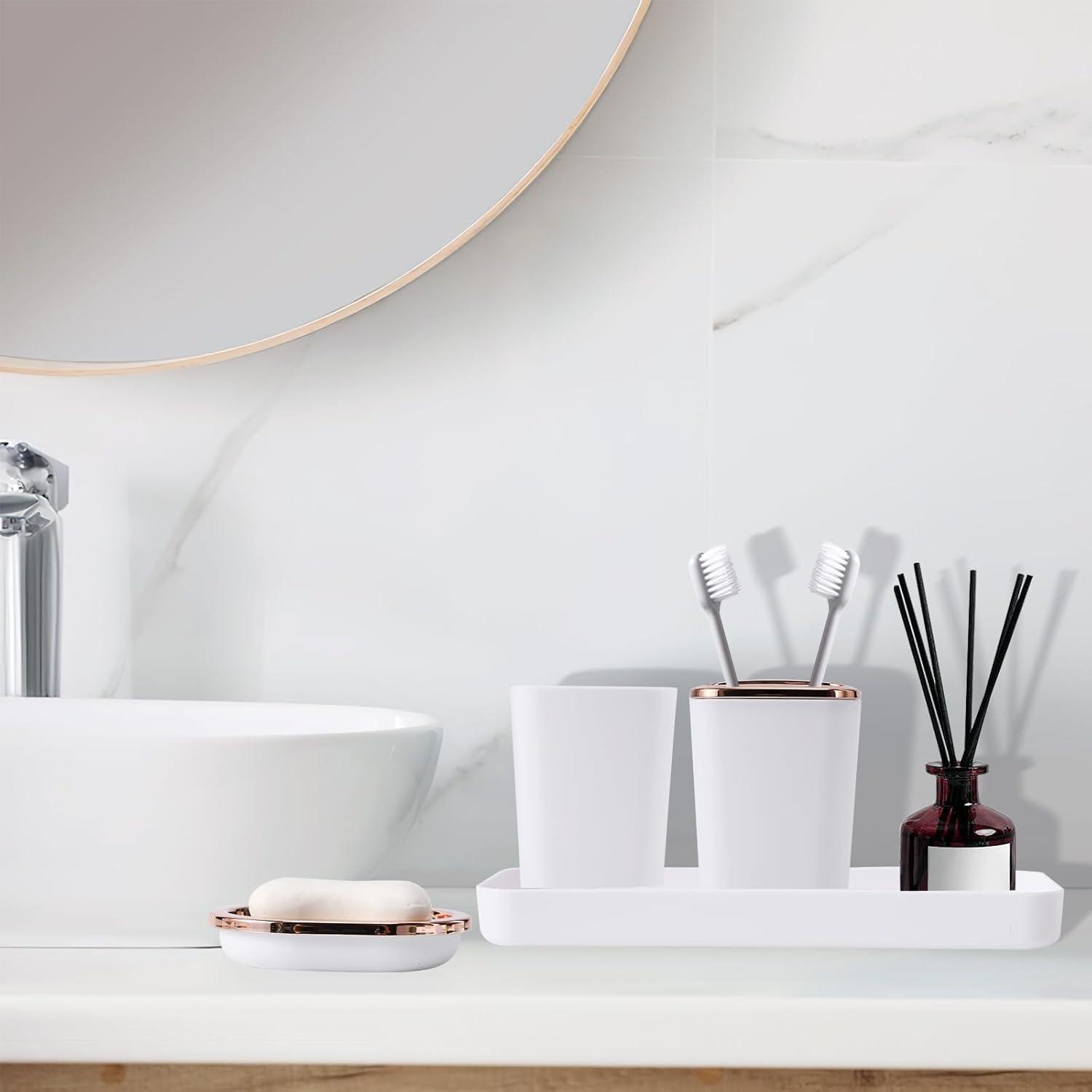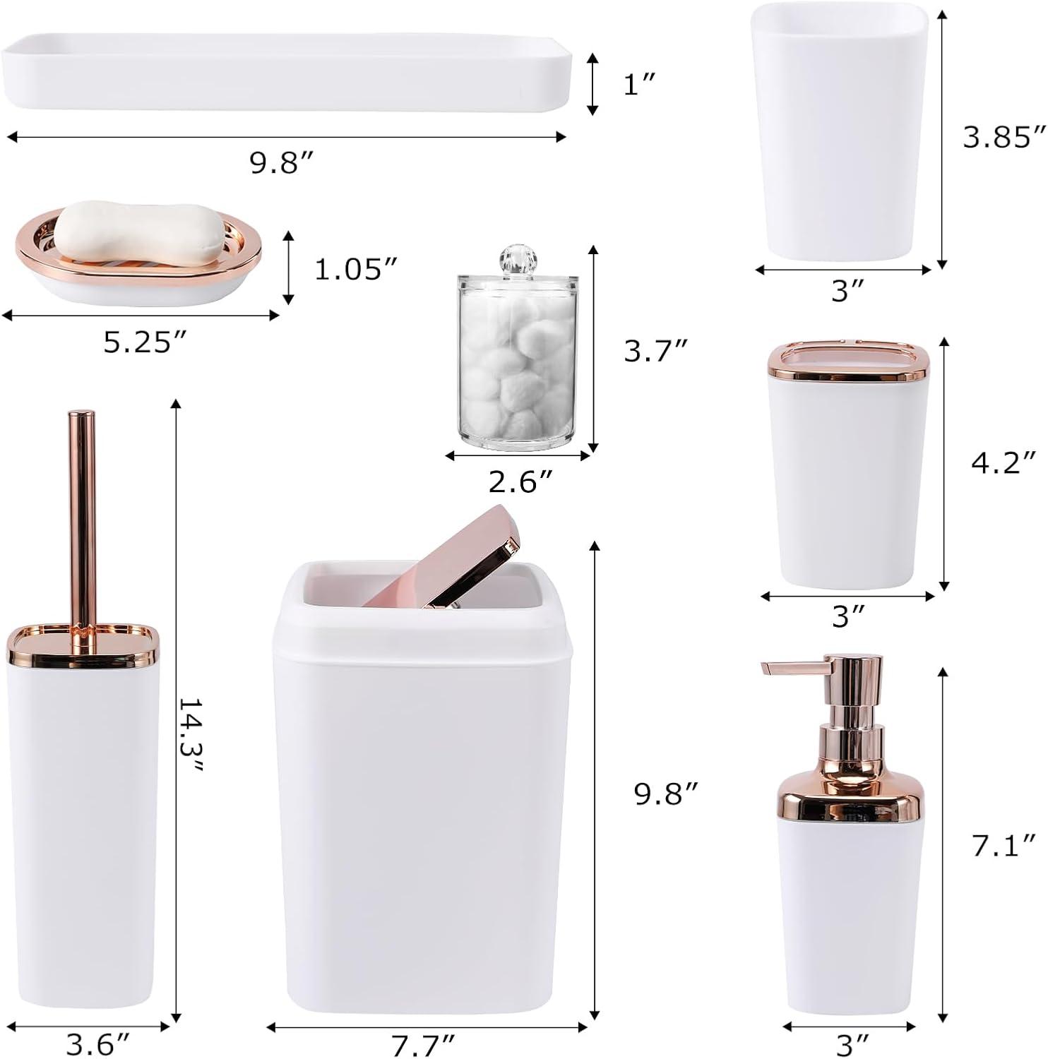 【HIGH QUALITY MATERIAL】Our grey bathroom accessories set is made of high-quality PP and ABS material, which is not easy to break, more durable and outperforms glass, ceramic, resin, wooden bathroom sets. Premium plastic white bathroom sets are durable and they will stay elegant and new over time.