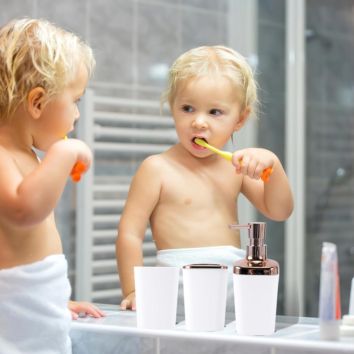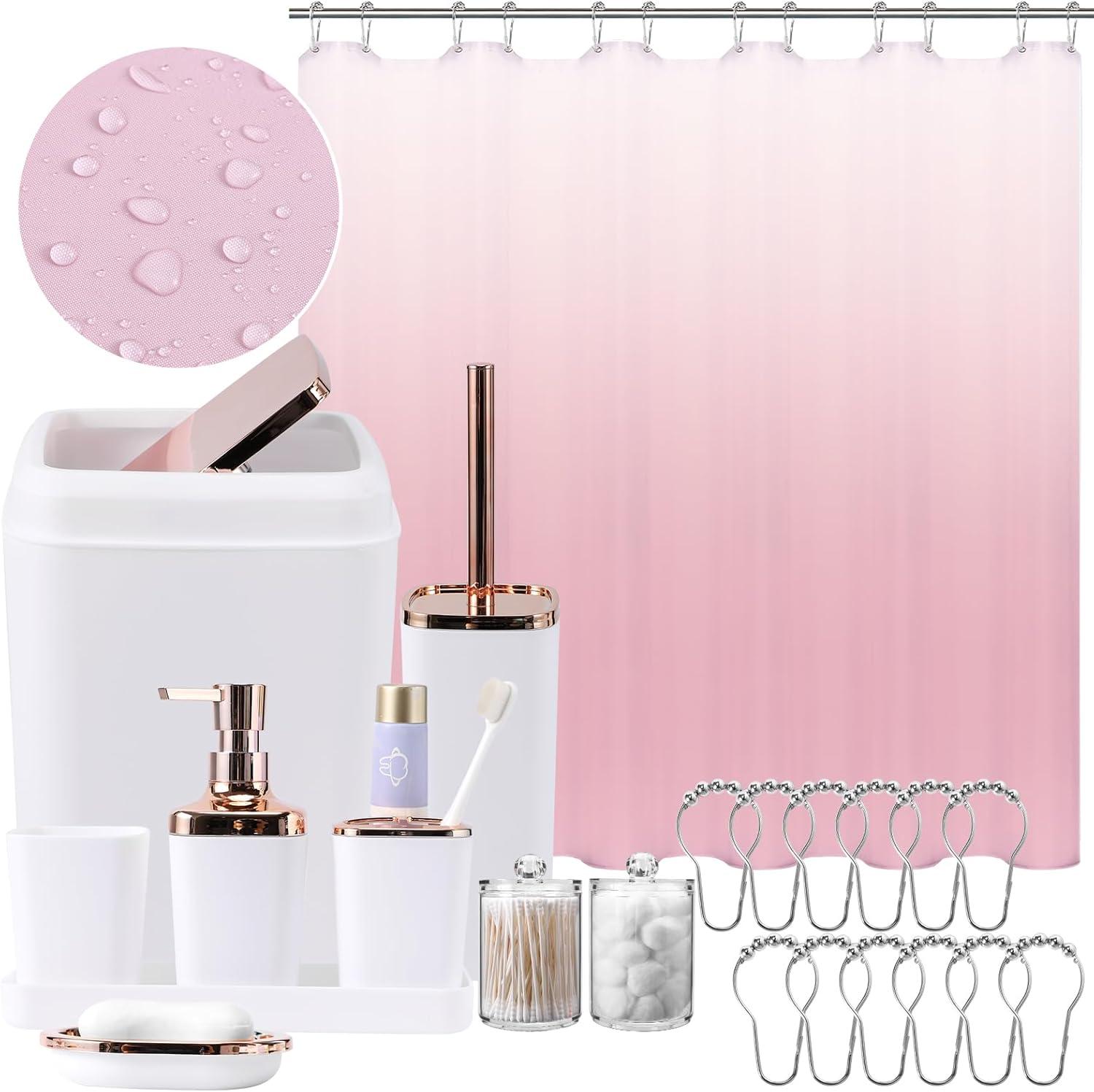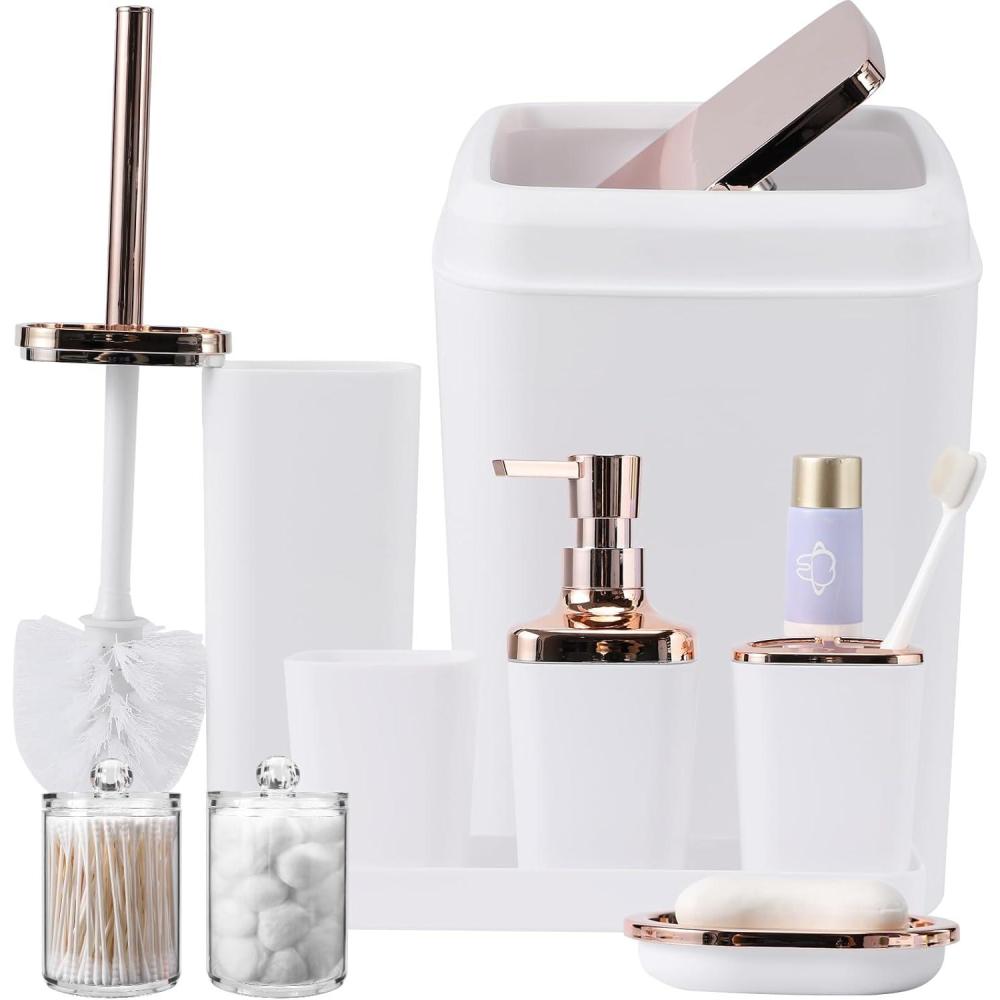 【HIGH QUALITY MATERIAL】Our grey bathroom accessories set is made of high-quality PP and ABS material, which is not easy to break, more durable and outperforms glass, ceramic, resin, wooden bathroom sets. Premium plastic white bathroom sets are durable and they will stay elegant and new over time.
