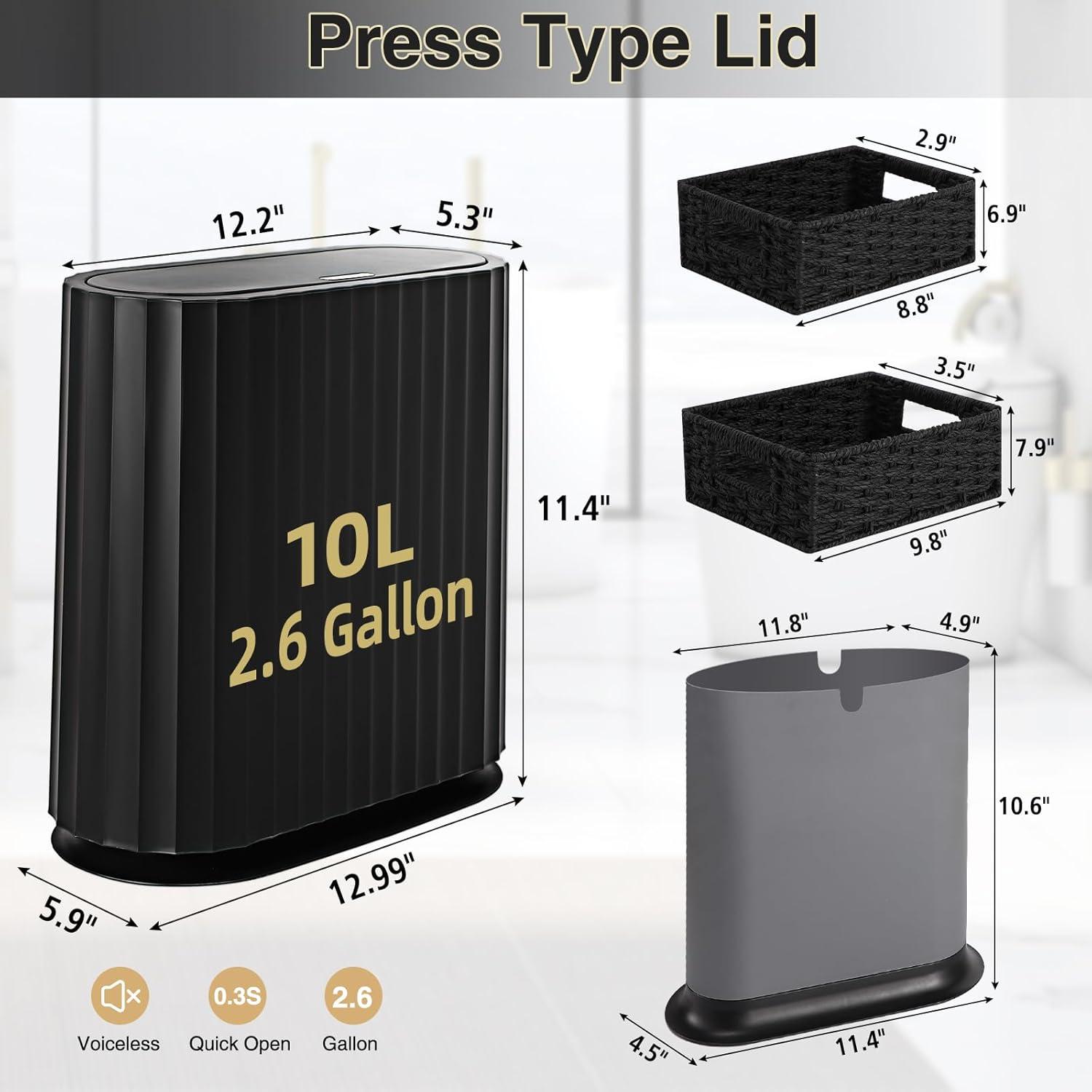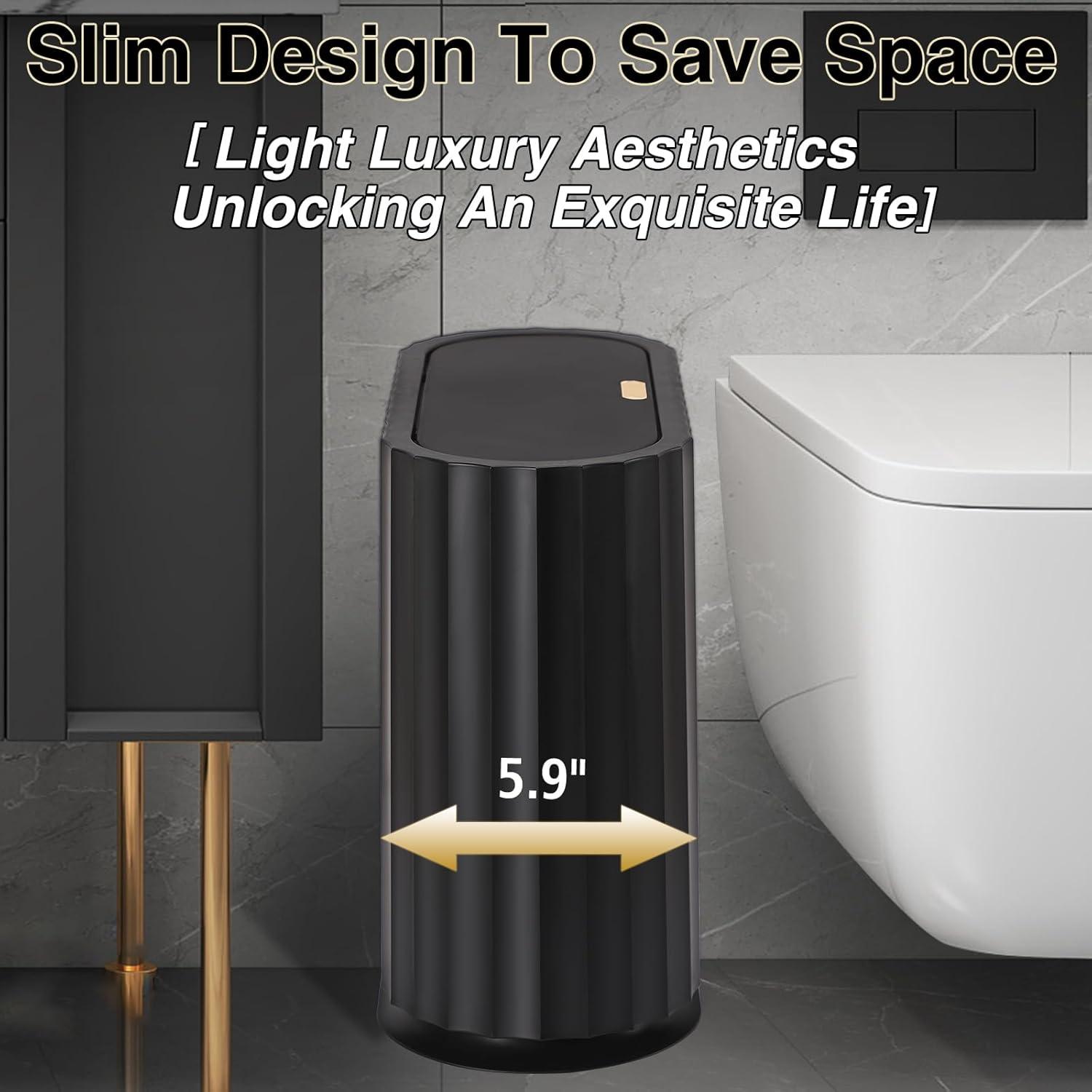 [Save-Space Small Trash Can]: XLHOMO slim bathroom trash can making it a fit for the bathroom, bedroom, office, or any narrow space.Are you still annoyed by the narrow space in the room being wasted?Use it to improve your space utilization.