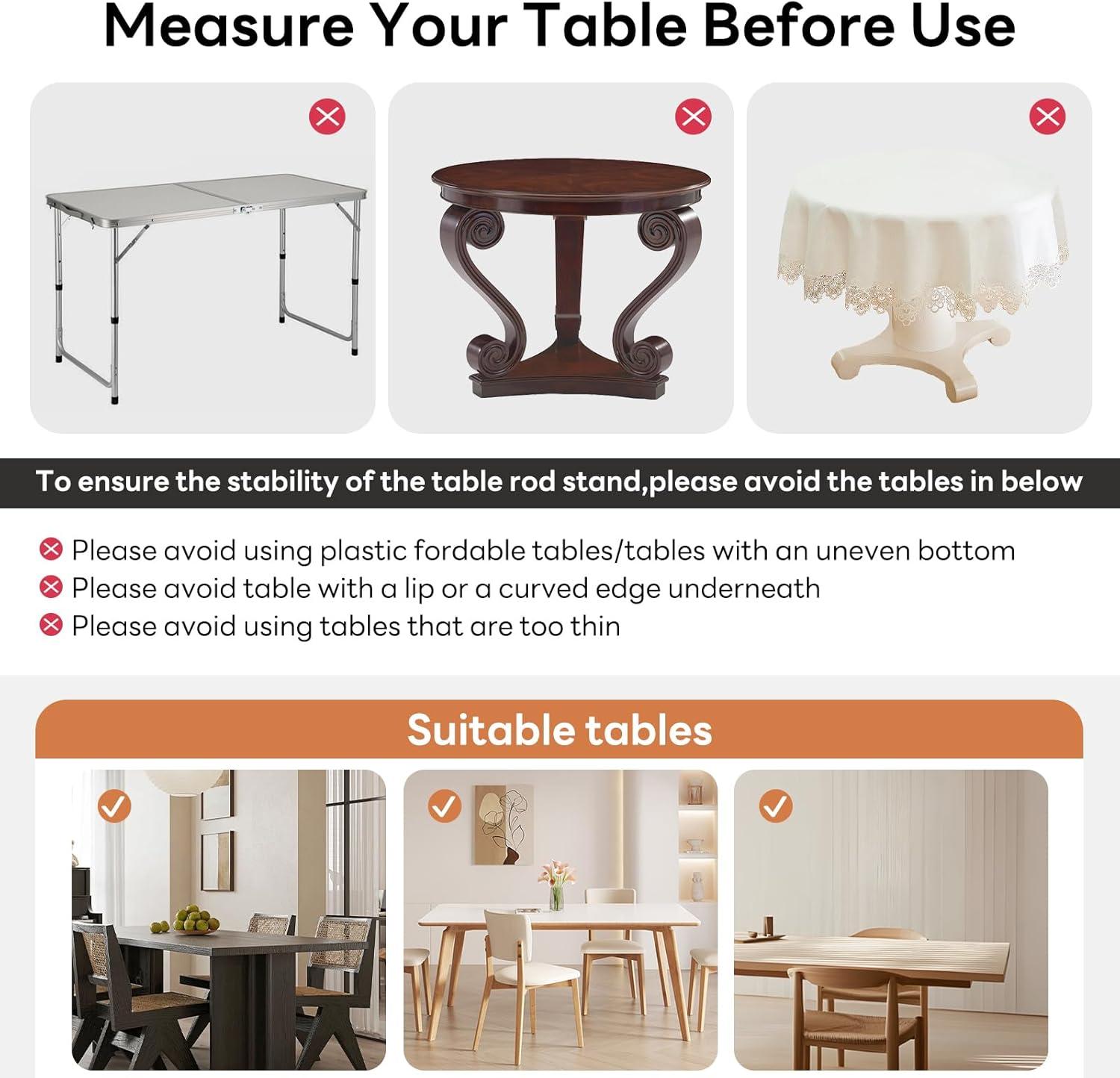 【Stable and Durable】The over table arch rod stand is made of round metal tubes, the top of the clamp is extended and widened to ensure a firm grip on the table, providing stability and preventing any wobbling, which keeps the stand steady and reliable. Additionally, the high-quality metal material and the rust-resistant metal ensure its stability during outdoor events. for Various Climbing Plant Wedding Garden Arch Bridal Party Arbor Decoration