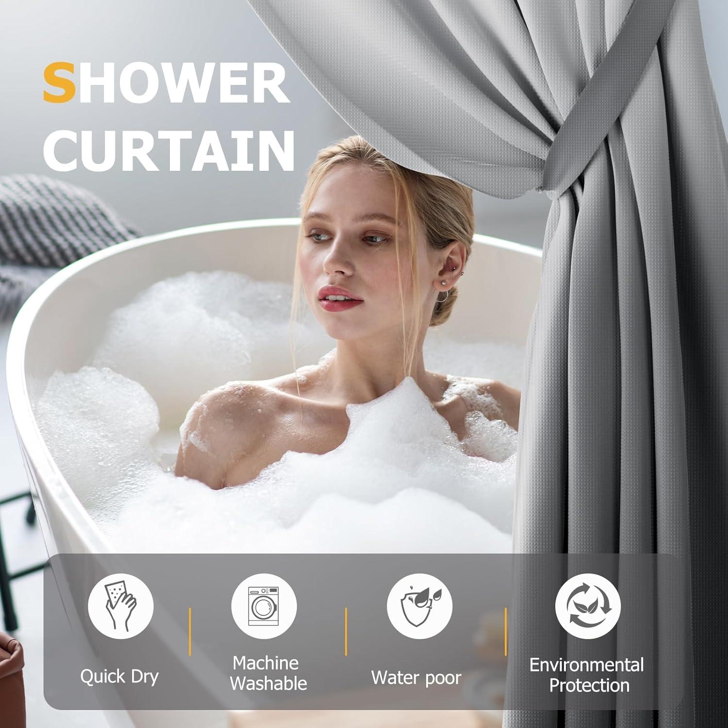 WATER RESISTANT & PROTECT PRIVATE: Our shower curtain is water resistant, it is not easy to moldy and is good to keep water inside the tub,which keeps your curtain look clean and fresh,vibrant gradient ombre colors, it will instantly elevate and add a touch of excitement and fashion to your private space ,this shower curtains are not see-through, protecting your most privacy.