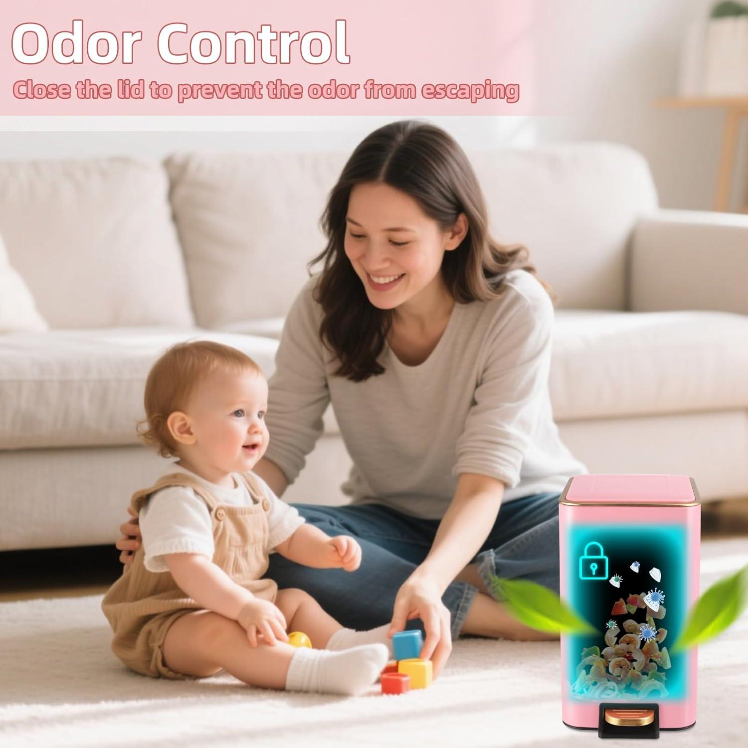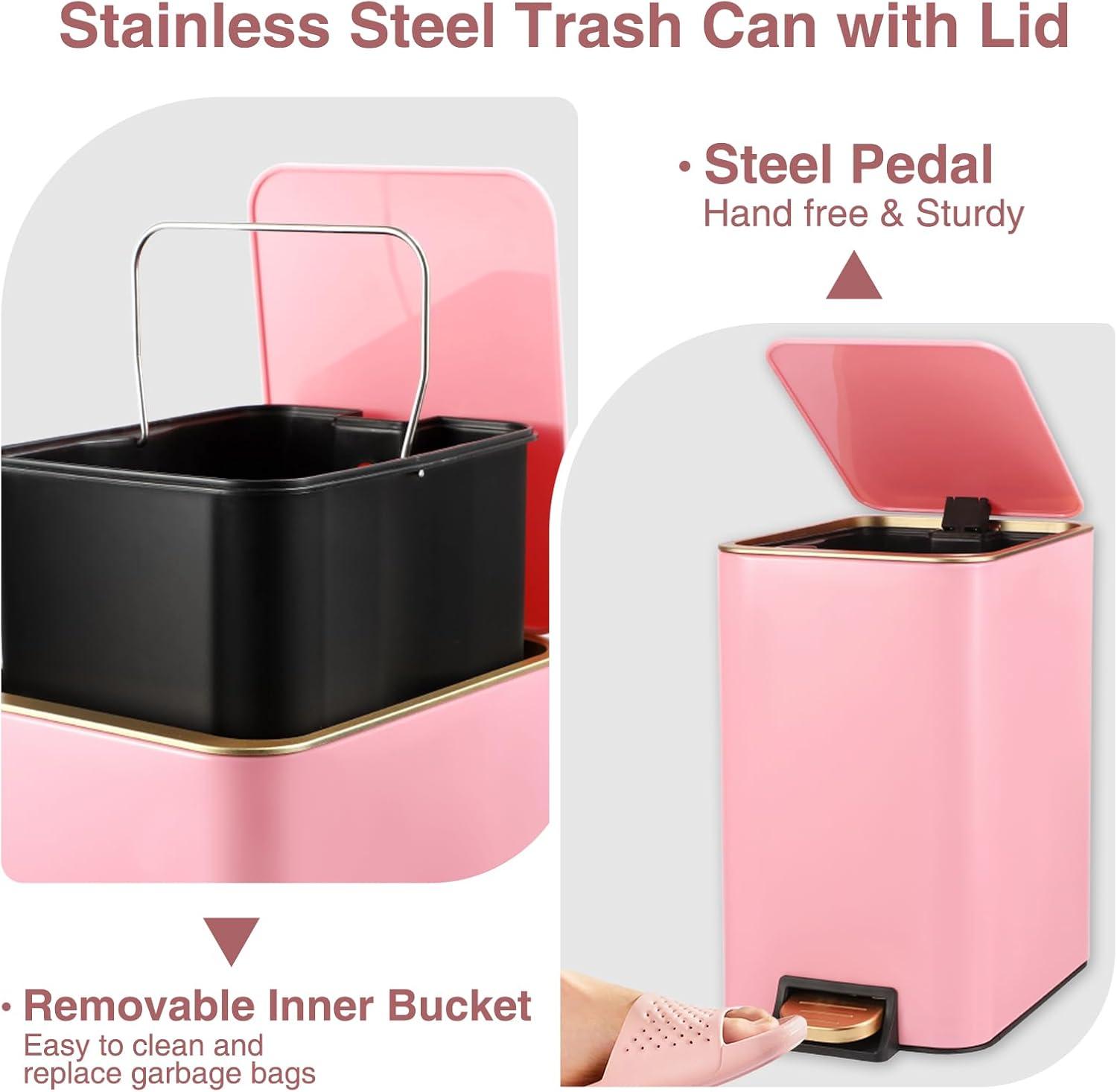 [Sturdy Steel Pedal]: Upgrade foot pedal of the bathroom trash can combines stainless steel tread with plastic material, making a lighter and more comfortable pedaling experience.Engineered to last over 150,000 steps, allowing you to step more than 20 steps a day for 20 years
