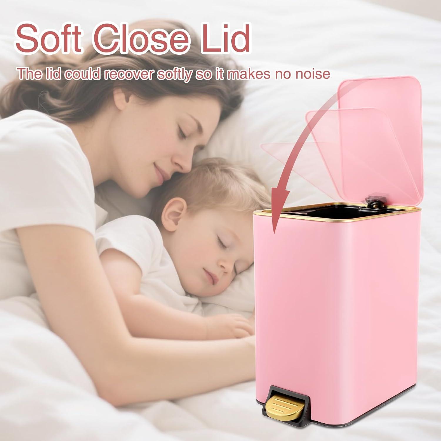 [Soft Close & Stay Open Lid]: The lid opens and closes smoothly and silently with a push of the pedal as quietly as flipping a book, don’t worry about disturbing the rest of your family. Fix the lid at 90° to stay open as long as you need
